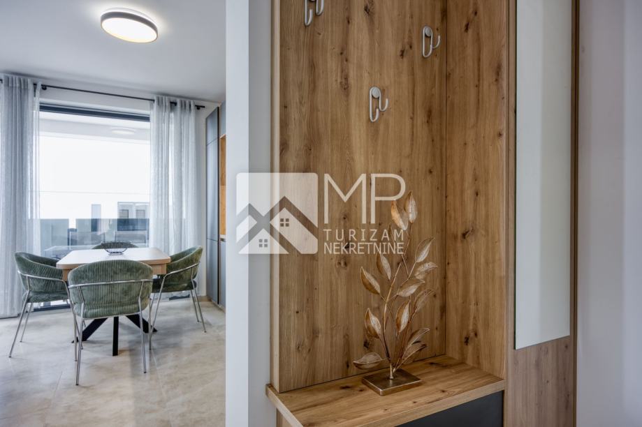 Stan je kompletno namješten i opremljen te se takav i prodaje. U svakoj spavaćoj sobi se nalazi klima uređaj (ukupno tri u stanu), a na parkingu je postavljena priprema za punjenje električnih automobila.