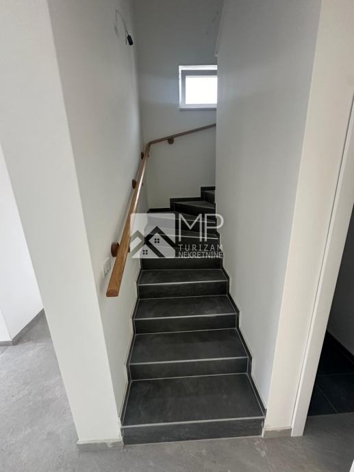 Prizemlje se sastoji od ulaznog hodnika, spavaće sobe, kupaonice i open space dnevnog boravka s kuhinjom i blagovaonom sa izlazom na natkrivenu terasu, sa koje se pristupa uređenoj okućnici. Unutarnjim stepenicama dolazimo na drugu etažu, gdje su se smjestile 3 spavaće sobe, od kojih svaka ima vlastitu kupaonicu, te balkon na čijoj će prostranosti budući vlasnici moći maksimalno uživati.