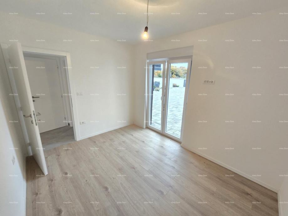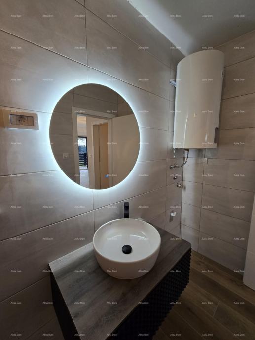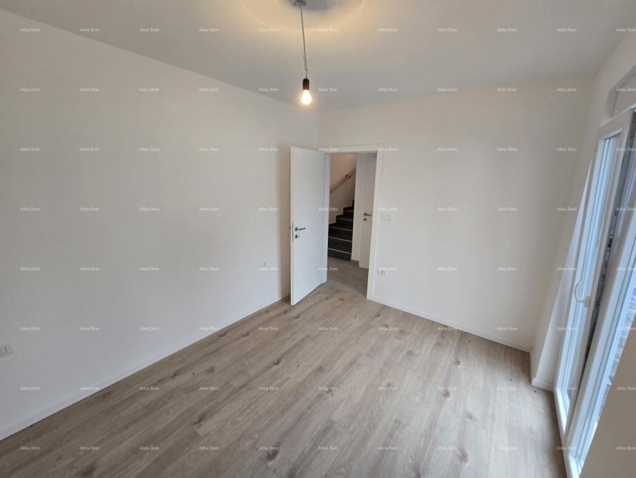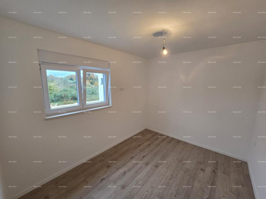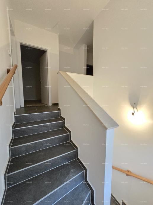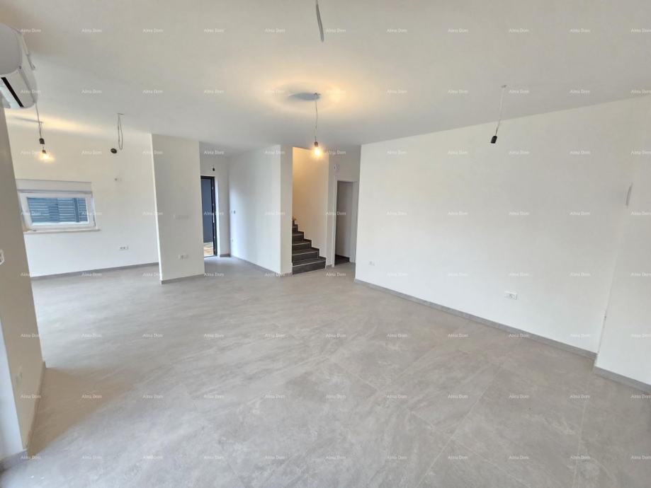U prizemlju se nalazi ulazni hodnik, kupaonica, spavaća soba, kuhinja s blagavaonicom te dnevnim boravkom i terasom. Unutarnje stepenice vode na kat gdje se nalaze tri spavaće sobe s kupaonicama te loggiom. 2 parkirna mjesta. Klimatizirano. Podno grijanje.