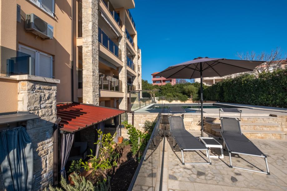 Medulin: Prekrasni dvosobni stan, terasa, vrt, bazen, 180 m od plaze..