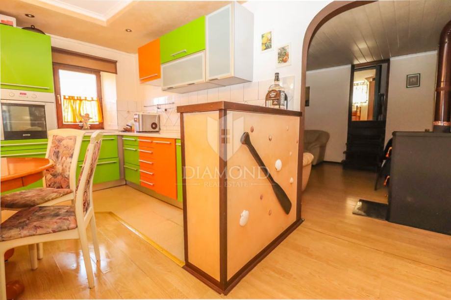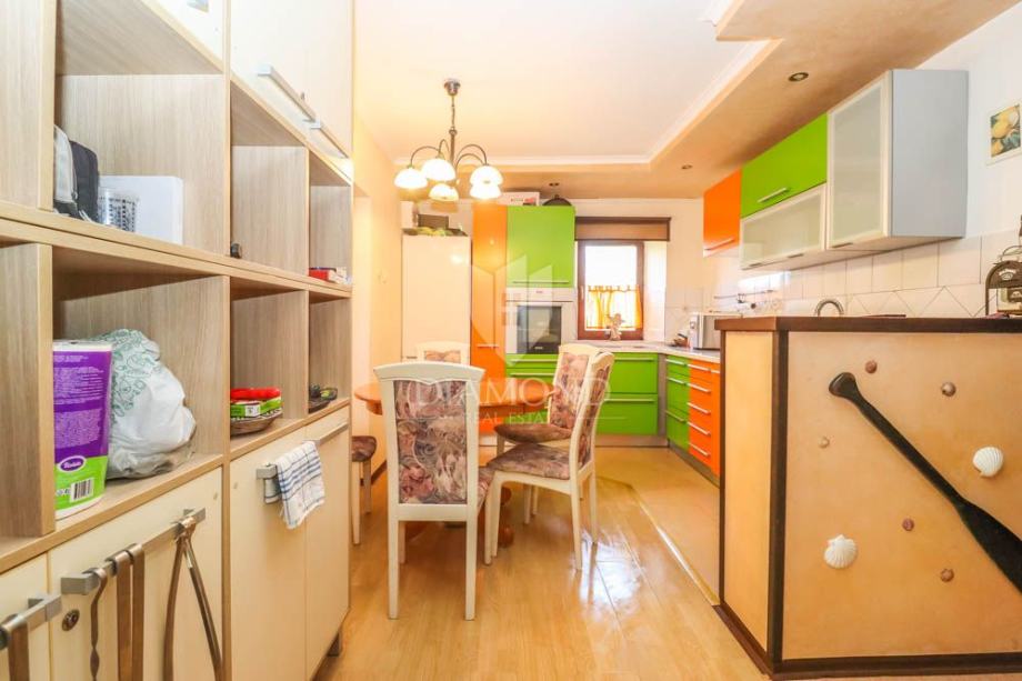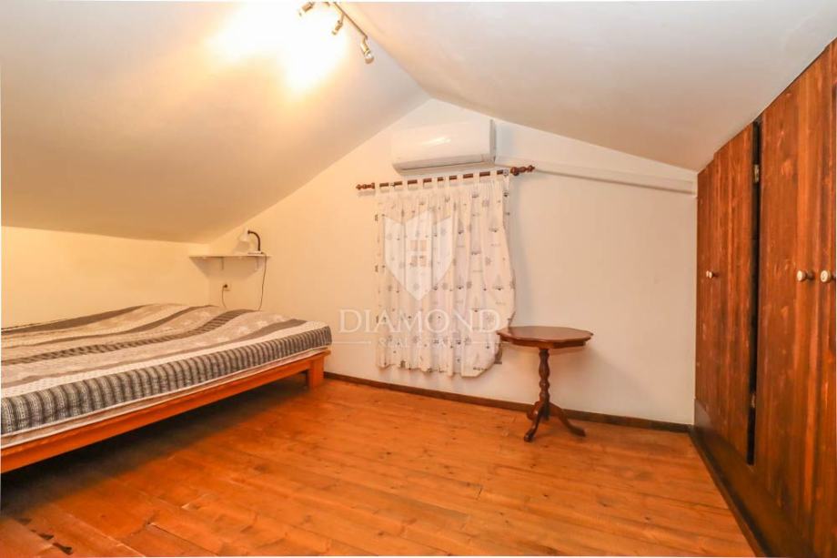 Kuća se prostire na 140m2. Sastoji se od ulaznog hodnika koji vodi do kuhinje, kupaonica i blagovaonice te u nastavku prostranog dnevnog prostora. U nastavku se nalaze dvije prostrane spavaće sobe, te isto tako stubište vodi do još dvije spavaće sobe koje se nalaze u potkrovlju kuće. Na okućnici se nalazi prostrana terasa pred ulazom u kuću te iza kuće ljetna kuhinja sa prekrasnim velikim roštiljem i još jedna privatna terasa, idealna za noćna druženja u prekrasnom ambijentu i dobrom društvu. Kuća nudi mnoge mogućnosti budući da ima mogućnost izgradnje još dva kata, čime bi se iskoristio puni potencijal ove unikatne lokacije. Na okućnici se nalazi i vanjski tuš, razne voćke te spremište od 6m2 koja se također može pretvoriti u dodatan apartman uz manje adaptacije. Parking se nalazi ispred ulaza.