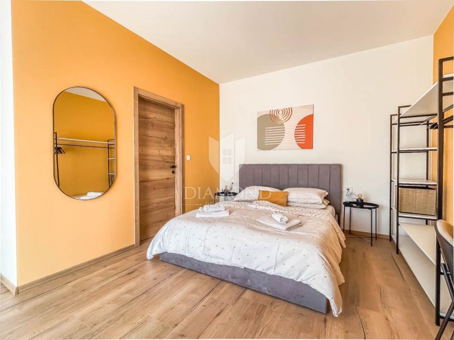 Ova dvokatna kuća sa 188m2 prostire se na prostranom dvorištu. U prizemlju se nalazi garaža, radna soba s kupaonicom, gostinjski WC, otvorena kuhinja i dnevni boravak te jedna prostrana spavaća soba s vlastitim kupatilom. Uz dvorište se prostire predivan bazen s drvenom plažom, stvarajući idiličnu atmosferu za opuštanje.
