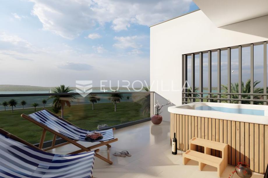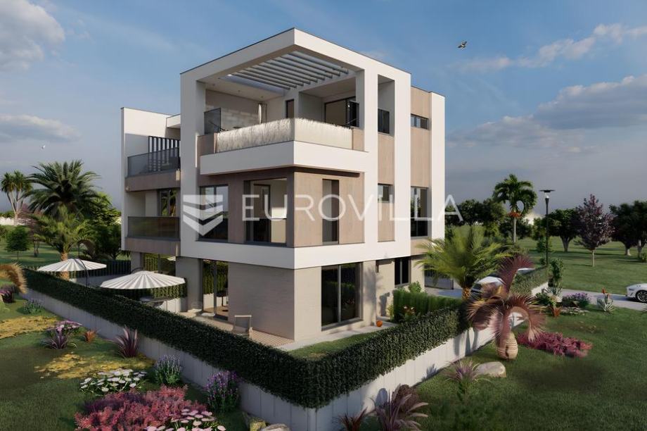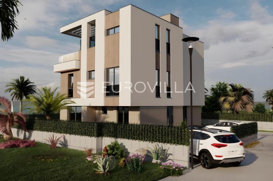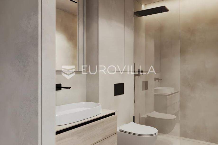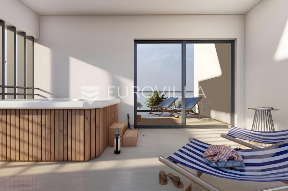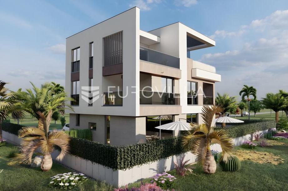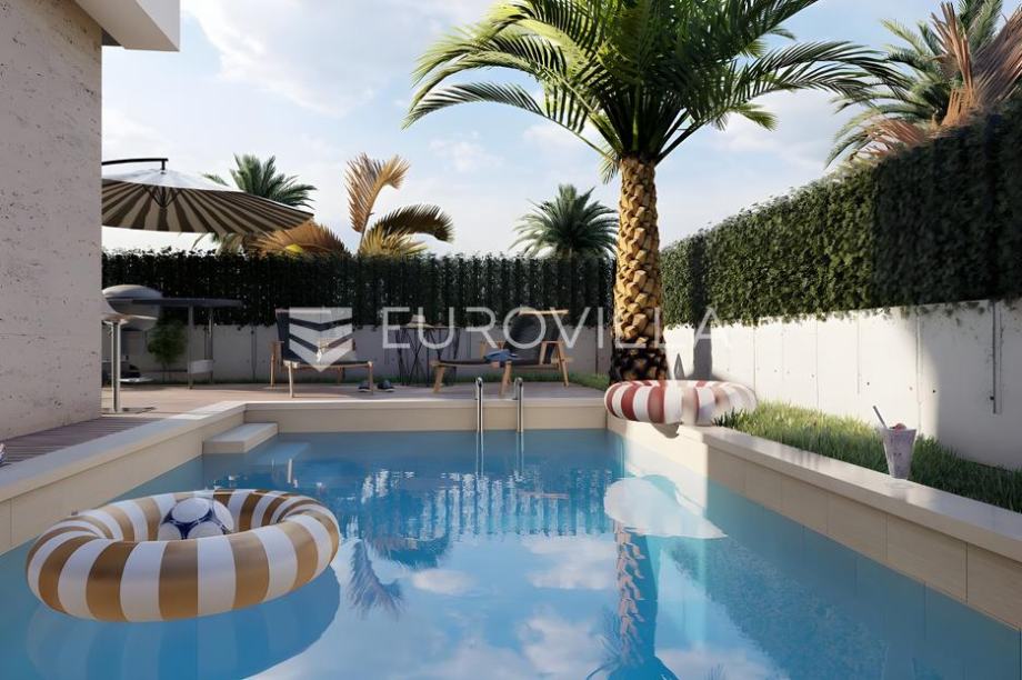 Istra, Medulin - prekrasna villa smještena na samo 200 m od mora čija izgradnja oduzima dah! Ova prekrasna dvojna villa proteže se na 3 etaže kroz prizemlje, prvi i drugi kat, a ukupne je površine od 187,82 m2 uz uređenu okućnicu površine 238 m2.U prizemlju ove prekrasne ville nalazimo bazen veličine od 19.23 m2 obložen keramičkim pločicama, kompletno uređeno zelenilo te tlakavcem popločeno dvorište oko bazena, ulazni hodnik koji nas uvodi u dnevni boravak s kuhinjom površine 30,24 m2 te jednu kupaonicu.Na prvom katu nalazimo hodnik sa stepeništem, dvije spavaće sobe, dvije kupaonice i balkon na koji se izlazi iz jedne spavaće sobe.Na drugom katu ville pronaći ćemo još jednu spavaću sobu s svojom kupaonicom te prostrani balkon površine čak 20 m2 na kojem se smjestio veliki jaccuzzi u kojemu ćete uživati uz prvoklasan pogled na more.Nekretnina se prodaje kompletno opremljena vrhunski planiranom izvedbom interijera kao što možete vidjeti na slikama. Podno grijanje bit će sprovedeno kroz čitavu kuću, grijanje će se odvijati pomoći dizalice topline te hlađenje split sustavom klima uređaja u svim prostorijama za maksimalnu udobnost. Stolarija koja će biti postavljena bit će u antracit boji i visokokvalitetna s troslojnim staklima i komarnicima na svim prozorima. Fasada će biti izrađena u kombinaciji ventilirajuće kompakt fasade, kamena i demit sustava modernog dizajna s odličnom izolacijom.Cijena je izražena bez PDV-a. Kupnja od provjerenog i sigurnog investitora!Za više informacija stojim na raspolaganju....