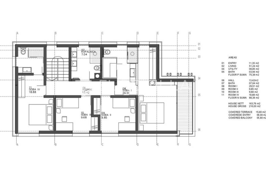 Napravljeno je idejno rješenje za gradnju luksuzne vile od 210 m2 s bazenom i garažom, 4 spavaće sobe, 4 kupaonice.