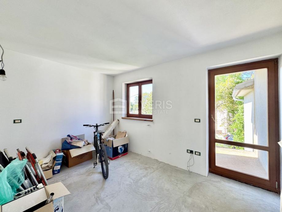 Na parceli se nalazi i pomoćni objekt veličine 40m2 bruto površine, koja može služiti kao spremište ili vanjska konoba, u kojoj se nalazi sanitarni čvor i još jedna prostorija. Kuća nema građevinsku, te ujedno ni uporabnu dozvolu.