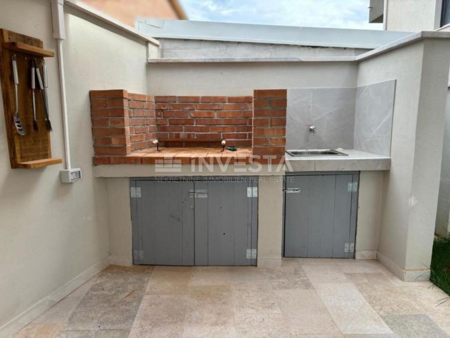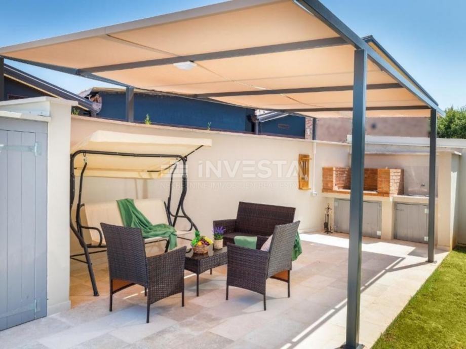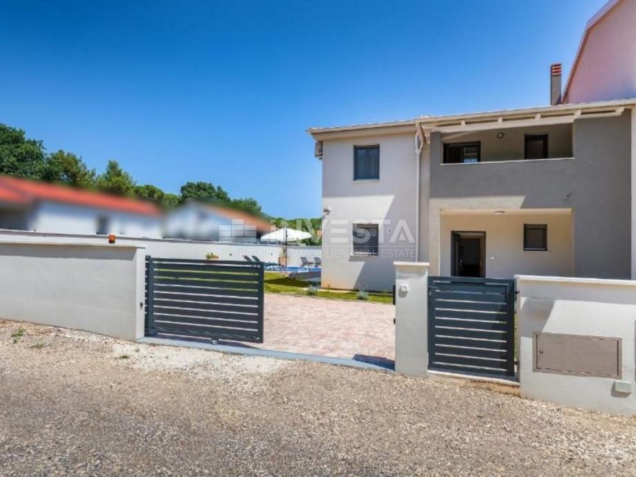 U mirnom dijelu naselja u sklopu općine Medulin, smještena je ova moderna novogradnja s vrhunskim sadržajima, svega 500 metara od mora, te 700 metara od uređene plaže. Riječ je o dvojnoj kući suvremenog dizajna, s ukupno 3 spavaće sobe, bazenom, ljetnom kuhinjom, uređenom okućnicom i potpunim komforom za obiteljski život ili turistički najam.