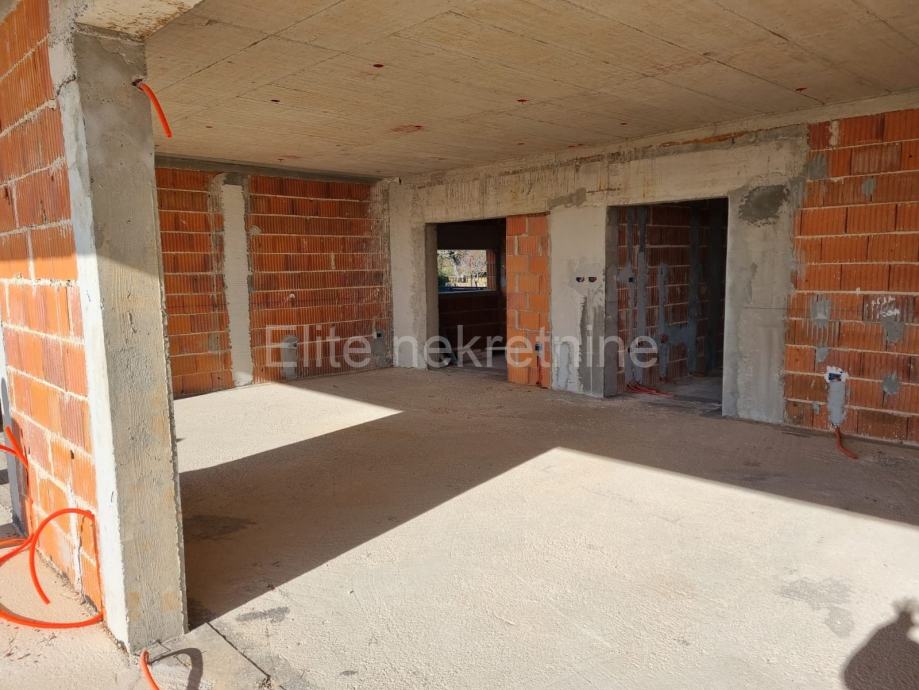 U prizemlju je predviđen ulazni prostor, kupatilo, kuhinja, blagovaonica te veliki dnevni boravak s izlazom na prostranu terasu. U vanjskom dijelu nalazi se natkriveni dio s prostorom za roštiljanje sa svim sadržajima (ljetna kuhinja, roštilj, WC) te veliki bazen (9x4) sa svim popratnim sadržajima za ugodno boravljenje i uživanje u ljetnim danima.
