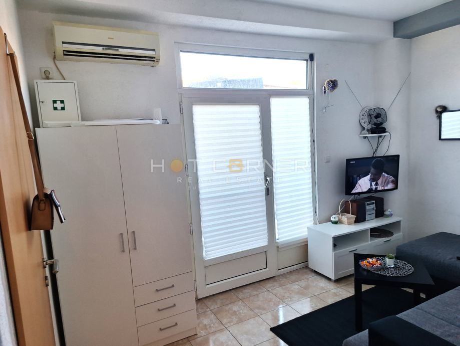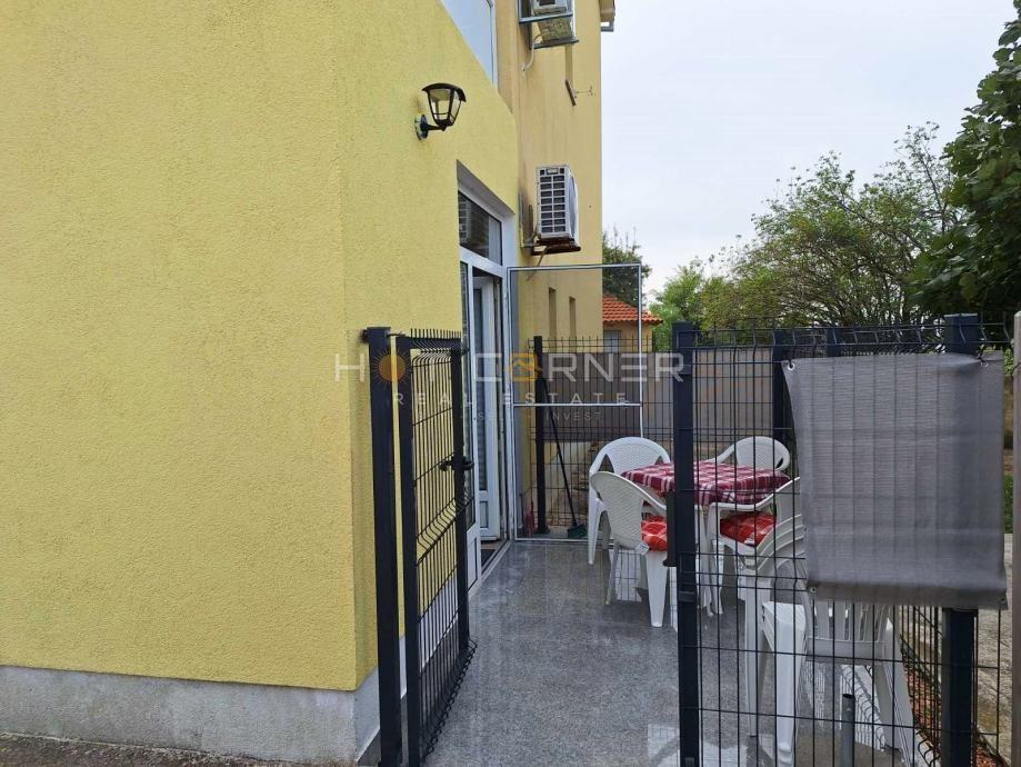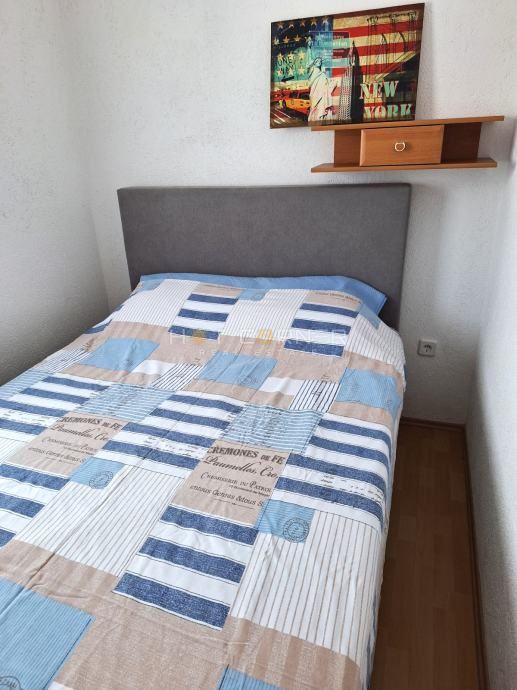 Mala novija zgrada sa samo 7 stanova (godina izgradnje: 2004.), potpuno renoviran stan s novim namještajem i uređajima, funkcionalnog rasporeda: DB + kuhinja + trpezarija, odvojena spavaća soba, kupatilo, prekrasna vanjska ograđena terasa od 8 m2 i jedno vanjsko parkirno mjesto. Namješteno, klima uređaj, odlična investicija.