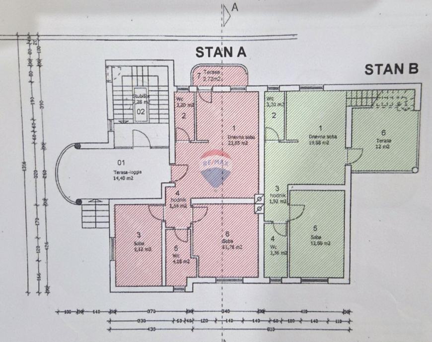 – ukupno 4 etažirana stana + zasebna kuća od 52m2