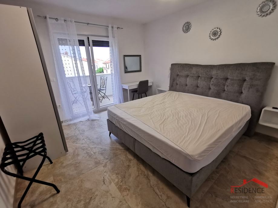 Prodajemo u Medulinu novu samostojeću kuću sa pogledom na more. Kuća se sastoji od prizemlja, prvog i drugog kata. Na svakom katu je jedan stan koji se fizički može podijeliti u dvije cjeline. Kuća je apartmanskog karaktera i idealna je za iznajmljivanje. Stan u prizemlju je površine 111.75 m2 i sastoji se od hodnika, tri spavaće sobe, dvije kupaonice, dnevnog boravka sa kuhinjom i blagovaonicom, tri terase te vrtom od 70 m2. Stan na prvom katu ima pogled na more, površine je 111.75 m2 i sastoji se od hodnika, tri spavaće sobe, dvije kupaonice, dnevnog boravka sa kuhinjom i blagovaonicom i tri terase. Stan na drugom katu sa pogledom na more, površine 111.75 m2, sastoji se od hodnika, tri spavaće sobe, dvije kupaonice, dnevnog boravka sa kuhinjom i blagovaonicom i tri terase. Stanovi su kompletno namješteni, svaki ima podno grijanje, klimu, 2 parkirna mjesta i ostavu. Priprema za solarnu centralu. Okućnice 663 m2. Udaljenost do mora: 1.5 km