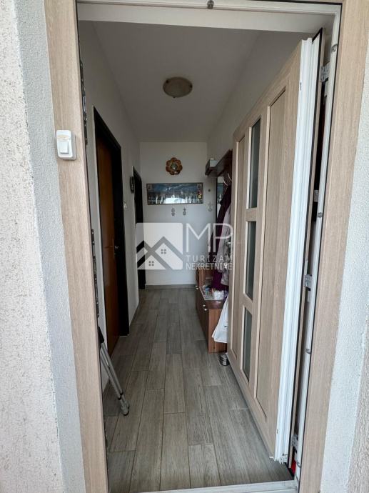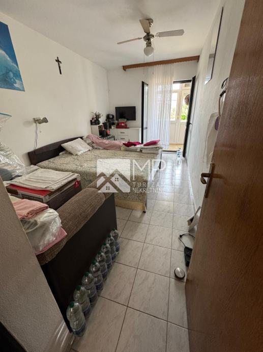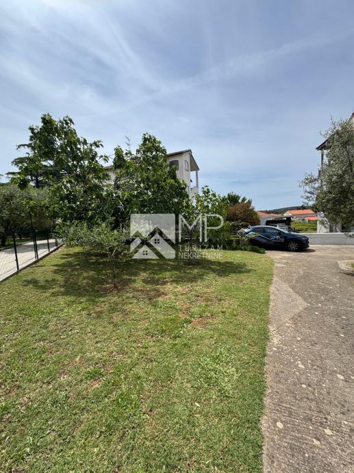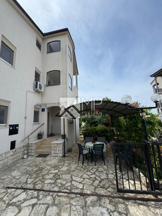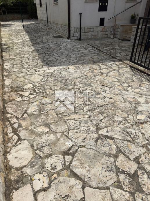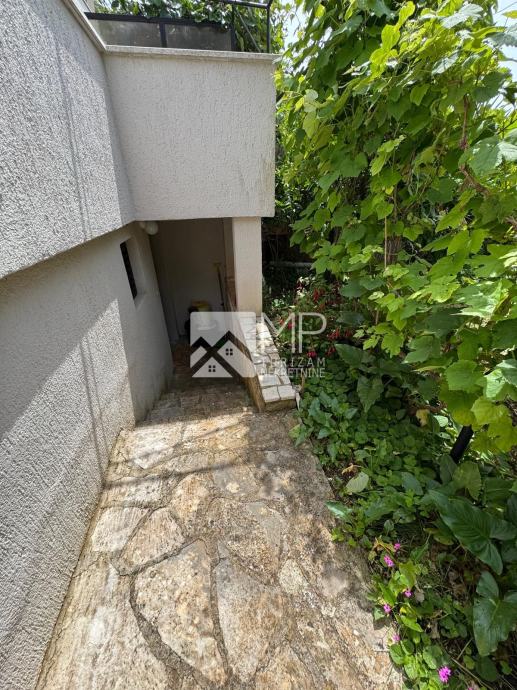 U prizemlju se nalazi stan površine 80m2 koji se sastoji od hodnika, kupaonice, kuhinje s blagovaonicom i dnevnim boravkom, te dvije spavaće sobe koje imaju izlaz na lijepu prostranu terasu koja je dijelom zatvorena, a dijelom otvorena.