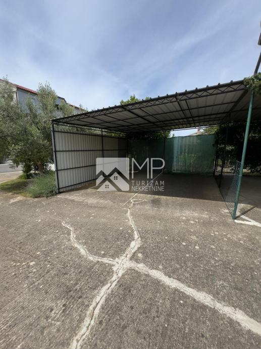 Smještena je na velikoj lijepo održavanoj okućnici s puno voćaka – višnje, smokve, šipak, limun, mandarina, a okružena je obiteljskim kućama, s parkiralištem unutar i izvan dvorišta. Na okućnici se nalaze još dvije terase s prostorom za sjedenje, te drvena kućica koja je u funkciji alatnice, te još puno uređenih detalja i cvijeća. Zbog veličine zemljišta budući kupac ima mogućnost izgradnje bazena i popratnih sadržaja.