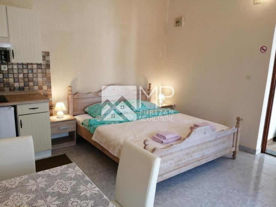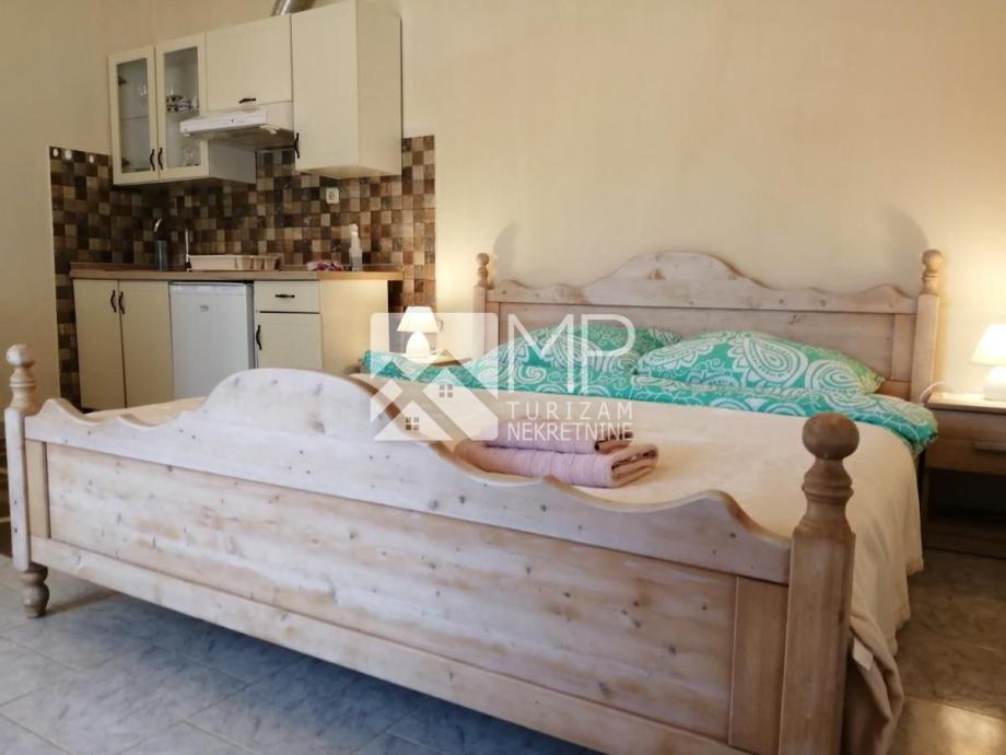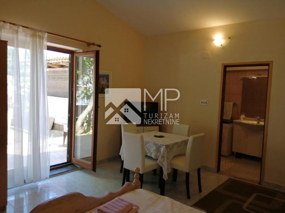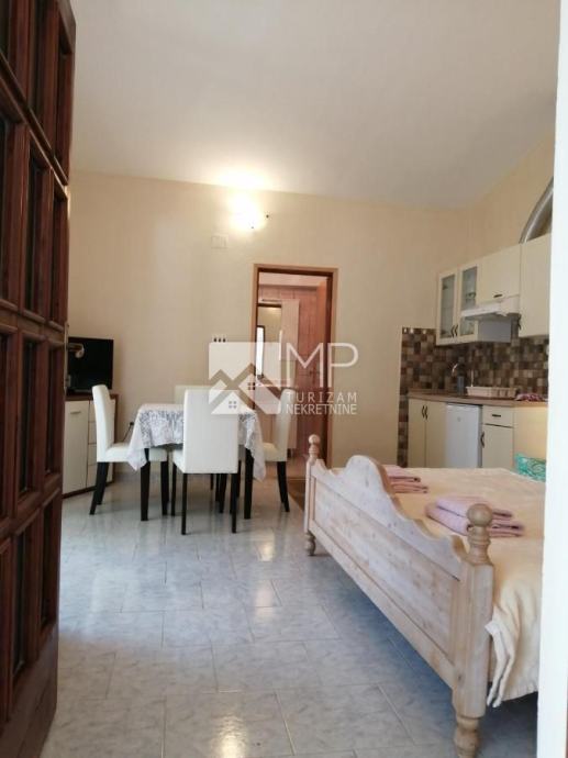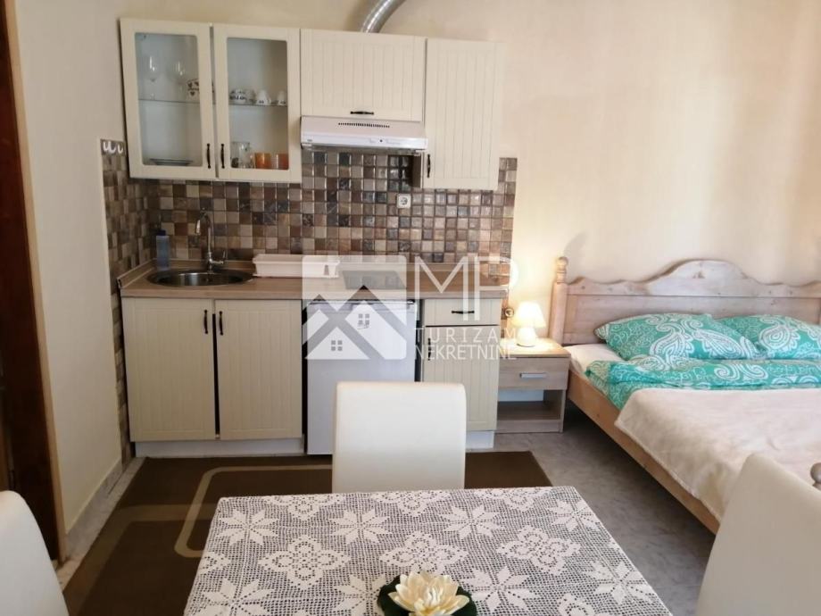 Studio apartman čini kuhinja s boravkom, kupaonica i terasa ispred ulaza.