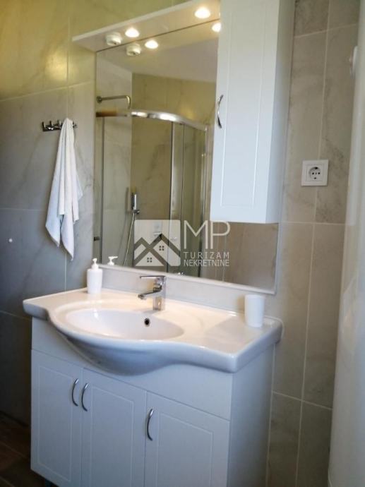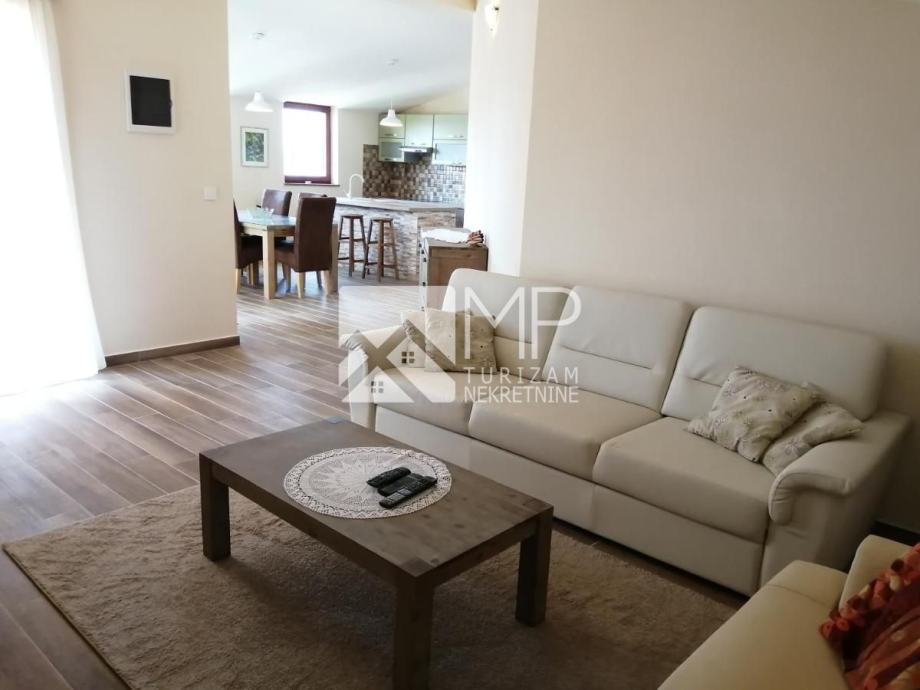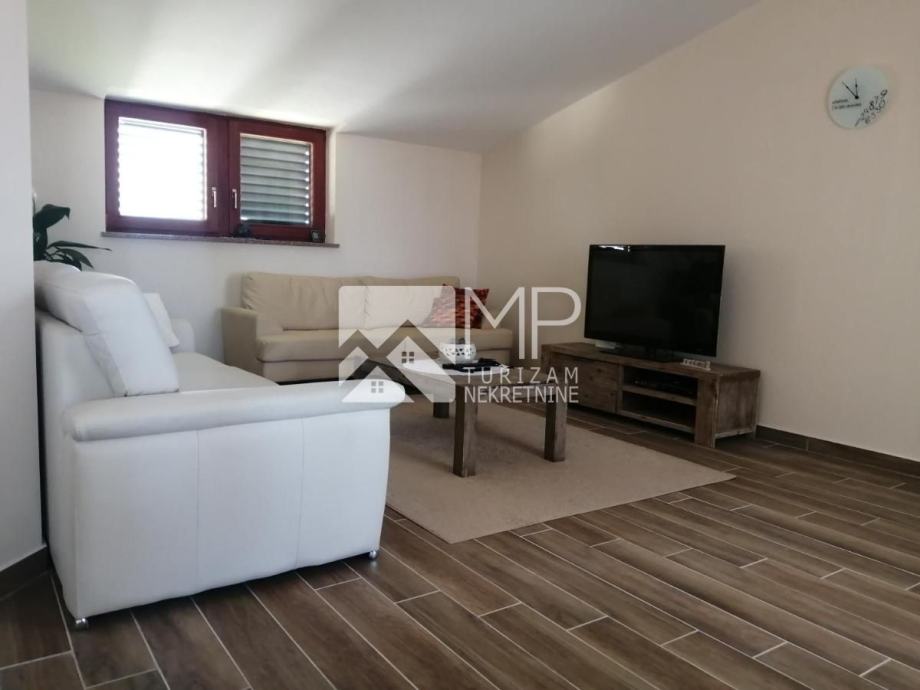 Apartman se sastoji od dnevnog boravka i kuhinje, dvije spavaće sobe, kupaonice i terase s izlazom na prostranu okućnicu. Na tom dijelu ima dovoljno mjesta da budući kupac napravi bazen.
