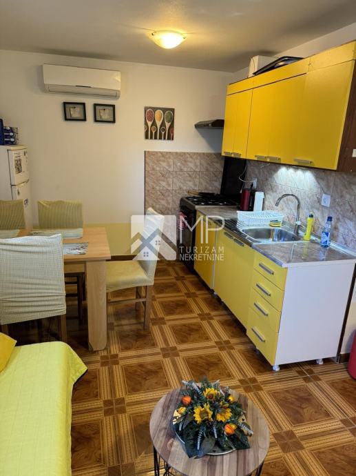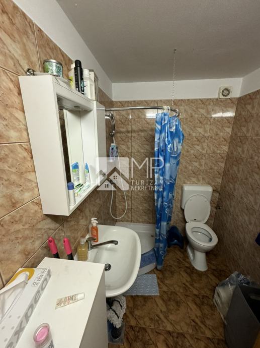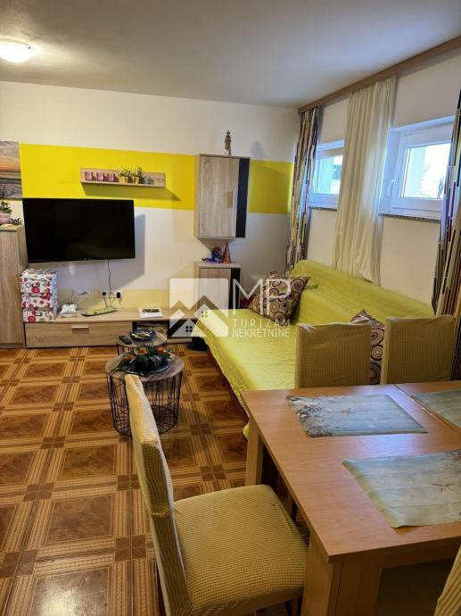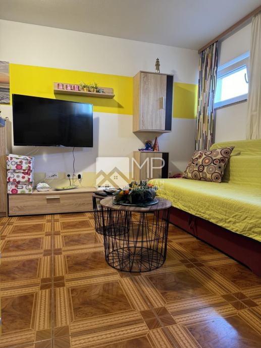 Stan se prostire na površini oko 40-ak m2, a sastoji se od ulaznog hodnika, dnevnog boravka+blagovaonice+kuhinje, jedne spavaće sobe i kupaonice, a na slikama se može vidjeti kako je prostor maksimalno i jako dobro iskorišten.
