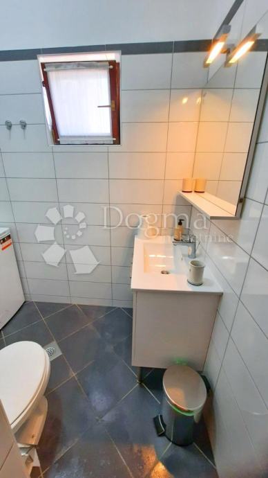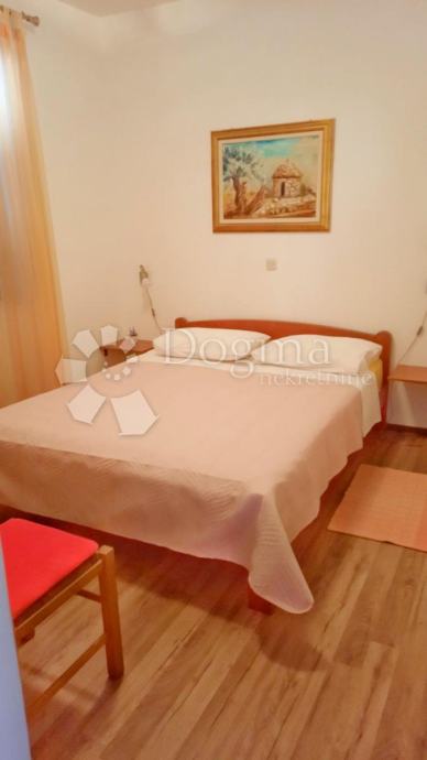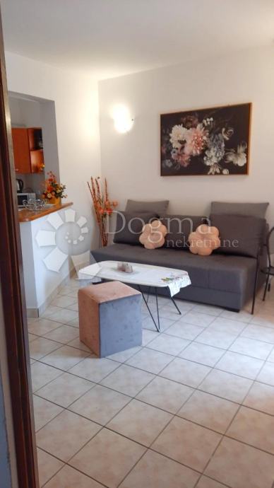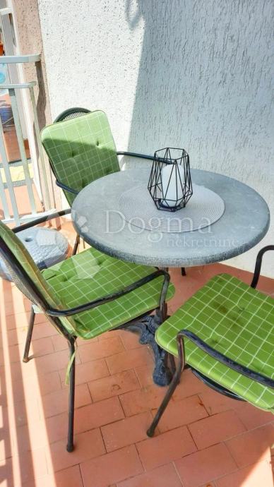 Sastoji se od prostranog ulaznog dijela, kuhinje s odvojenim šankom od dnevnog boravka, blagavaonice, svijetle spavaće sobe, kupaonice i terase. Stan je smješten na izuzetno mirnoj lokaciji, u blizini svih bitnih sadržaja kao što su vrtić, pošta, banka, trgovina, ljekarna, šetnice i predivne plaže. Uz to, nalazi se u lijepo uređenoj zgradi s mirnim susjedstvom te ima jedno parkirno mjesto. Brojila za struju i vodu su zasebna.