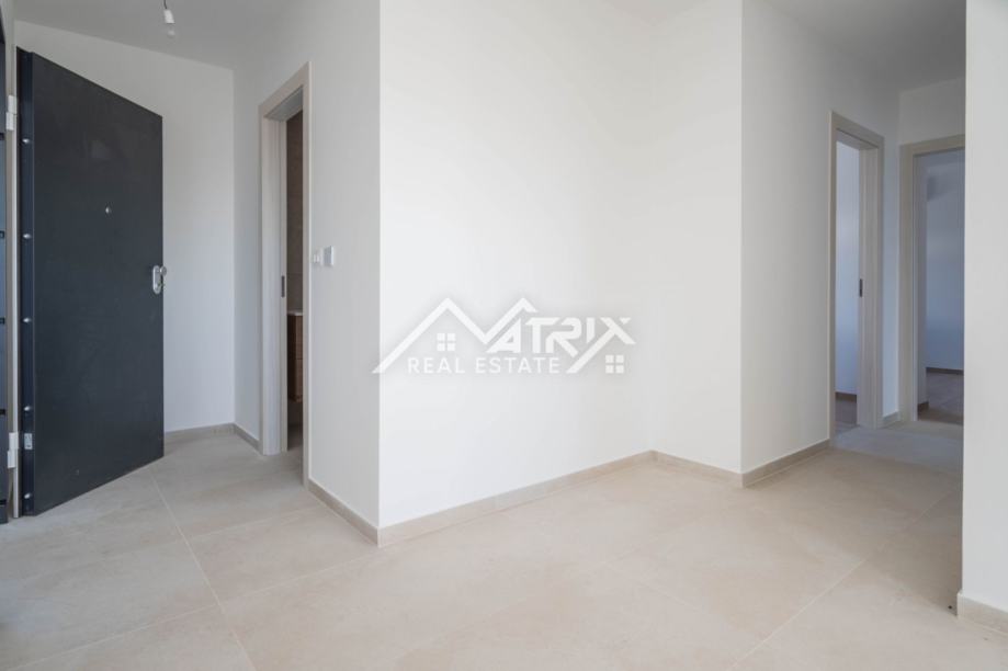 Stan se sastoji od dnevnog boravka povezanog s kuhinjom i blagovaonicom, tri spavaće sobe, dvije kupaonice, hodnika i terase s djelomičnim pogledom na more – idealne za jutarnju kavu ili večernje opuštanje.