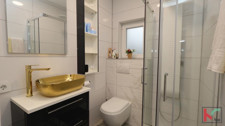 Dodatne prednosti ove nekretnine uključuju urednu dokumentaciju i uporabnu dozvolu, vlastiti vrt ispred zgrade, dva parkirna mjesta u vlasništvu te izuzetno mirnu i atraktivnu lokaciju. Stan je idealan kako za ugodan obiteljski život, tako i kao investicija za turističko iznajmljivanje.