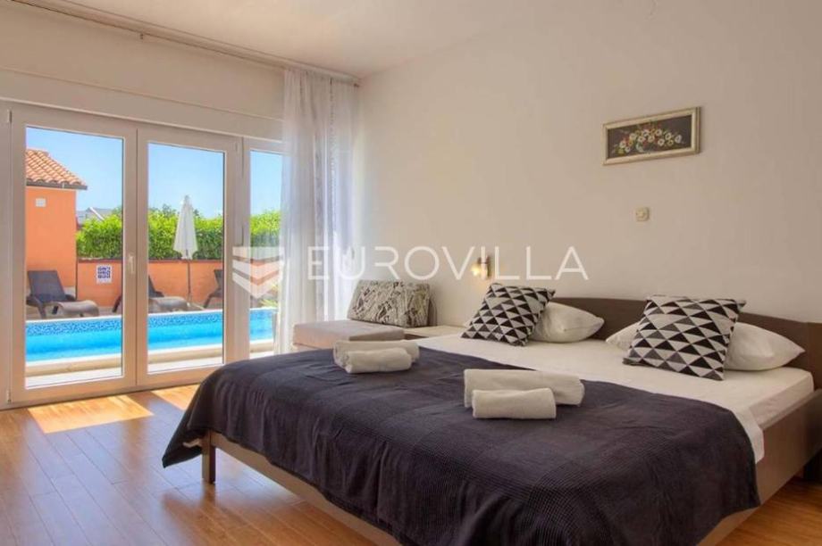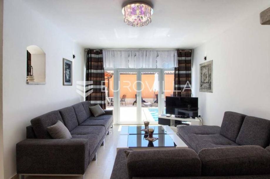 In Medulin, in an attractive location, this large detached house of 360 m2 is located on two floors. There is a 40 m2 swimming pool on the landscaped garden full of native plants, which can be heated if needed. On the ground floor of the house there is a large and bright living room with access to...