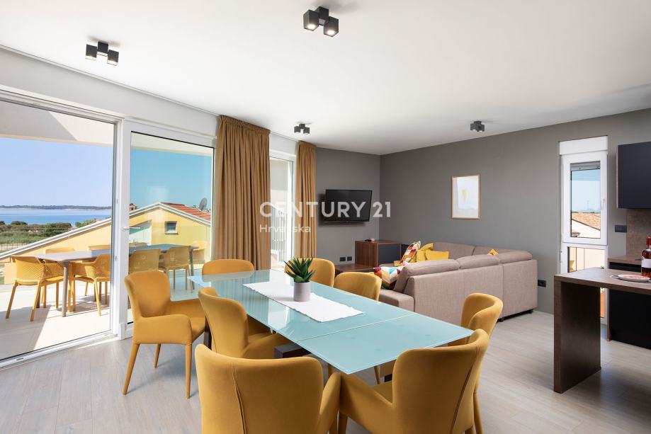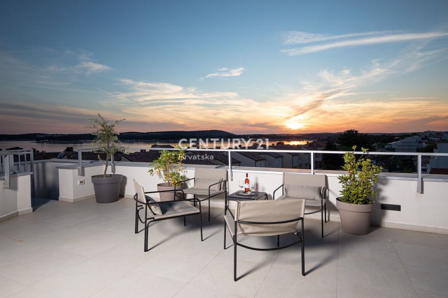 Nekretnina nudi prekrasan pogled na more sa svih katova – posebno prekrasan pogled na more, otoke i Medulin s krovne terase.