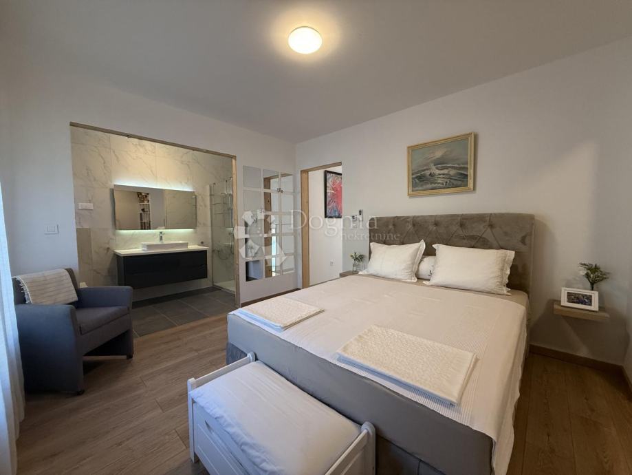 Na drugom katu nalaze se dvije spavaće sobe, svaka sa svojom kupaonicom, od kojih jedna ima veliku walk-in garderobu, a druga vlastitu terasu.