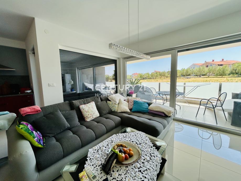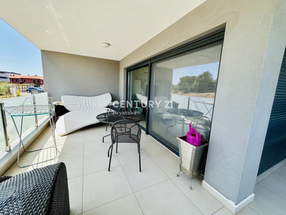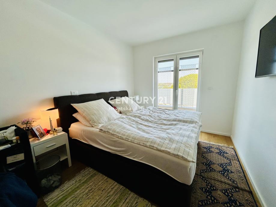 Netto korisna površina stana je 94.40 m2. Jugozapadna orijentacija osigurava obilje prirodne svjetlosti tijekom cijelog dana, ističući vrlo sunčanu atmosferu prostora. Iz dnevnog boravka se izlazi na prostrani balkon veličine, s kojeg se pruža lijep pogled na more i okolnu prirodu.