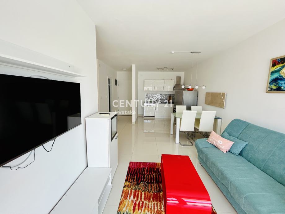 Netto korisna površina stana je 48.55 m2. Jugozapadna orijentacija osigurava obilje prirodne svjetlosti tijekom cijelog dana, ističući vrlo sunčanu atmosferu prostora. Iz dnevnog boravka se izlazi na prostrani balkon/lođu, s kojeg se pruža lijep pogled na okolnu prirodu.