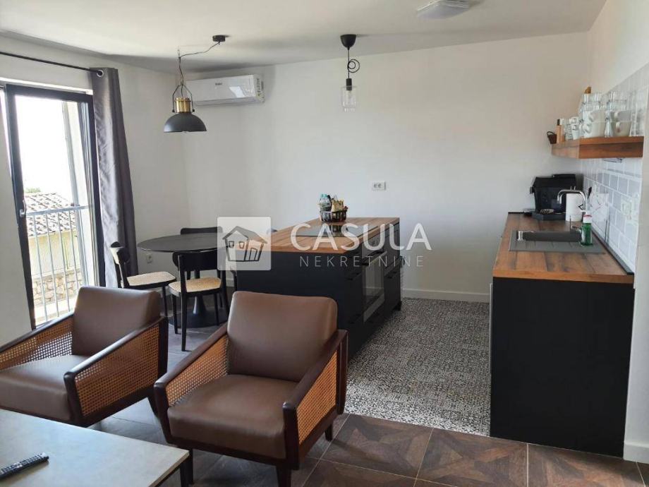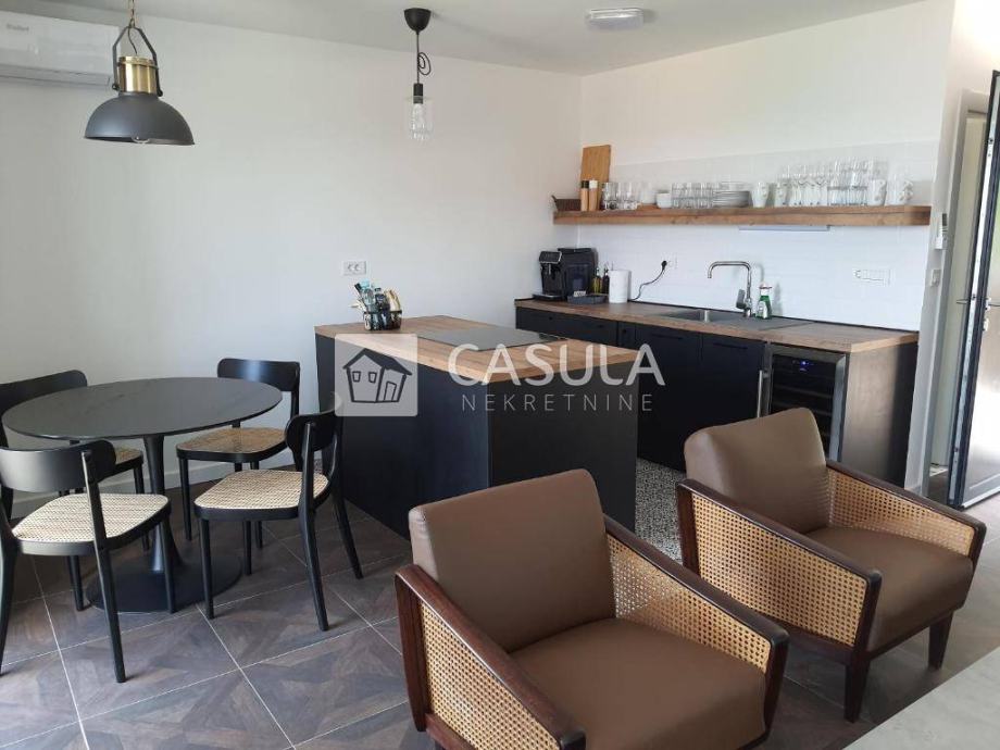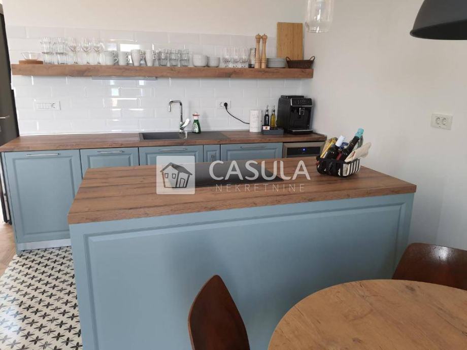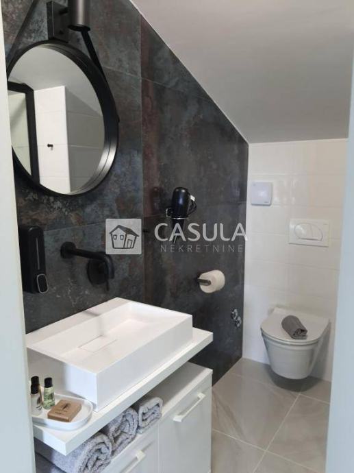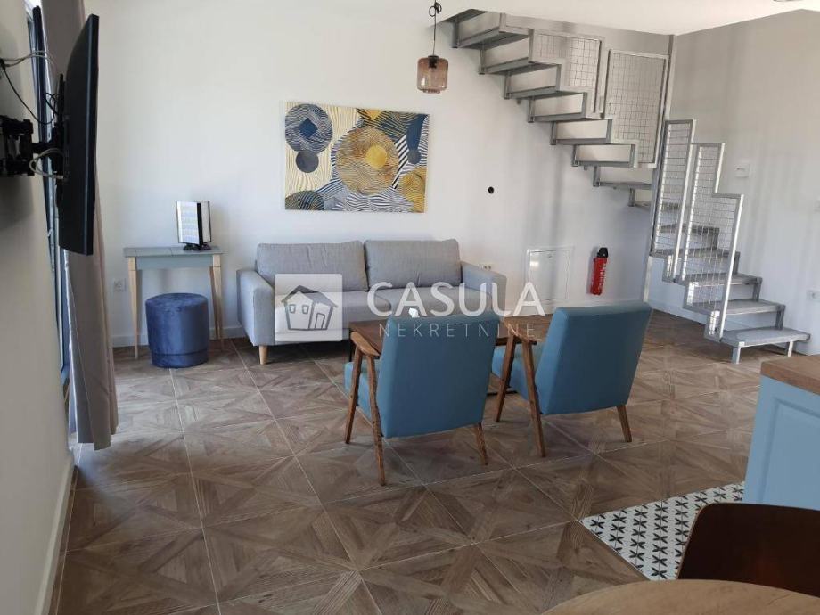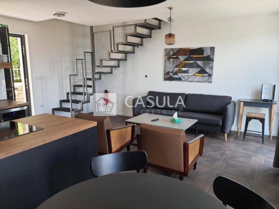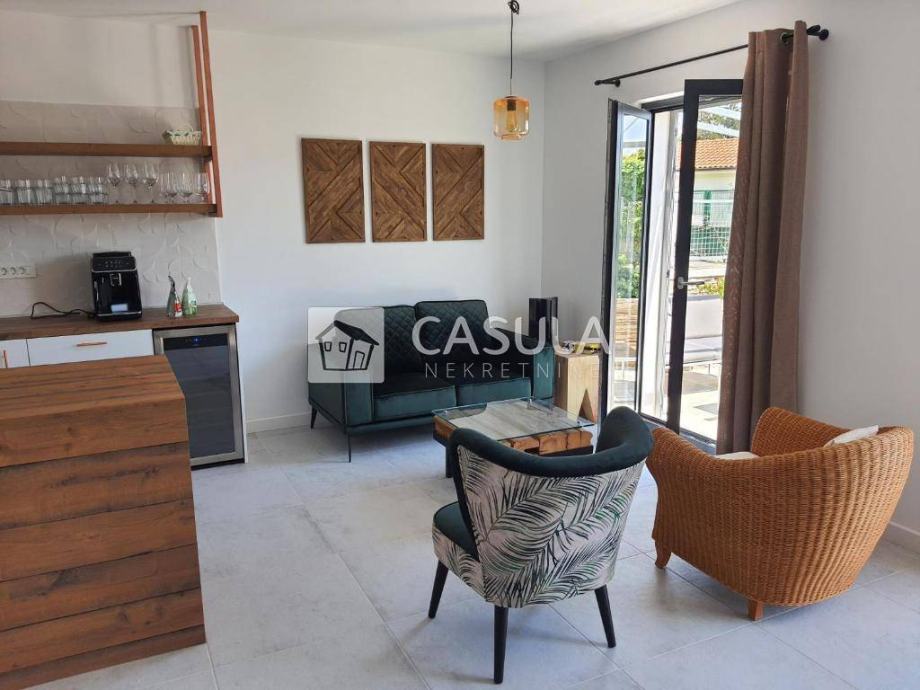 MEDVEJA,Samostojeća kuća na izvanrednoj lokaciji,samo 50 tak m od poznate šljunčane plaže. Kuća je kompletno obnovljena prije 3 godine, sastoji se od tri apartmana koja su u funkciji iznajmljivanja. Na prizemlju koje je površine 71,5 m2 nalazi se dvosobni apartman s dnevnim boravkom, dvije kupaone, kuhinja s blagovaonom i dnevni boravak te manje spremište. Ispred apartmana nalazi se lijepa ograđena terasa. Na gornja dva kata nalaze se identični dvoetažni apartmani , svaki po 71,5 m2. Svaki apartman ima na doljem katu uređenu kuhinju, dnevni boravak i wc a na potkrovlju do kojeg vode unutarnje stepenice nalaze se soba sa bračnim krevetom i jednim pomoćnim krevetom , galerija za još jedan krevet te kupaona. Svi su apartmani uređeni i namješteni. Ispred njih je velika terasa. Svi apartmani imaju klime i podno grijanje te solarni sistem za grijanje vode. Iza kuće je spremište i utility room sa zajedničkim bojlerom i wc površine 37,6 m2.Ispred kuće je parking za 3 automobila. Pogled na more.