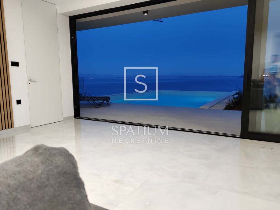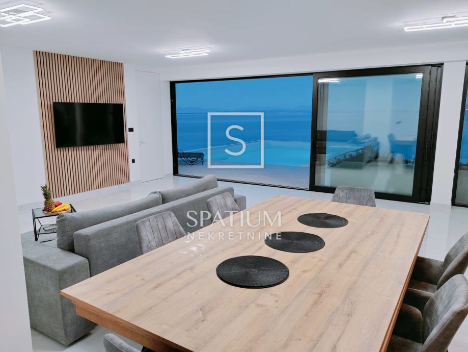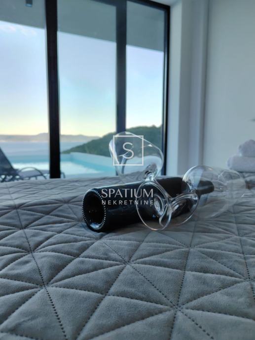 Južna orijentacija kuće osigurava maksimalno iskorištavanje dnevne svjetlosti i spektakularan pogled na more iz svake prostorije. Opremljena dizalicama topline i klima uređajima u svakoj prostoriji, kuća omogućava optimalnu temperaturu tijekom cijele godine. Vrhunski materijali i kvalitetni aparati jamče dugotrajnost i visoku kvalitetu života. Smještena na brdu iznad Medveje, nekretnina ima produženo trajanje sunčevih svjetlosti u odnosu na niže smještene nekretnine, što dodatno povećava njezinu atraktivnost.