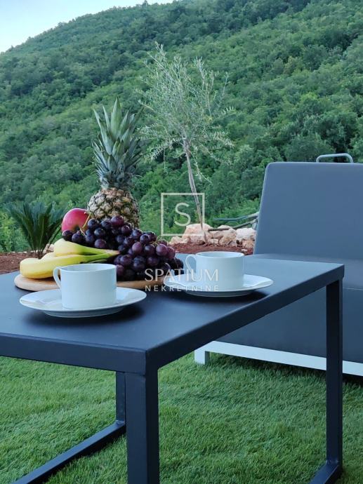 MEDVEJA, u ponudi imamo predivnu kuću s panoramskim pogledom i bazenom, smještenu malo iznad prekrasnih plaža Medveje, savršeno pozicioniranu za uživanje u prirodnim ljepotama i miru Kvarnera. Ukupne površine, 93m2, nudi prostran i svijetao dnevni boravak idealan za opuštanje i druženje. Blagovaona, smještena u centralnom dijelu kuće, povezana je s moderno opremljenom kuhinjom koja uključuje skrivene detalje poput biljarskog stola ispod stola za blagovanje. Elegantno uređena kupaonica i praktično smještena tehnička soba dodatno doprinose funkcionalnosti doma, dok spavaća soba pruža miran kutak za odmor s prekrasnim pogledom na more.