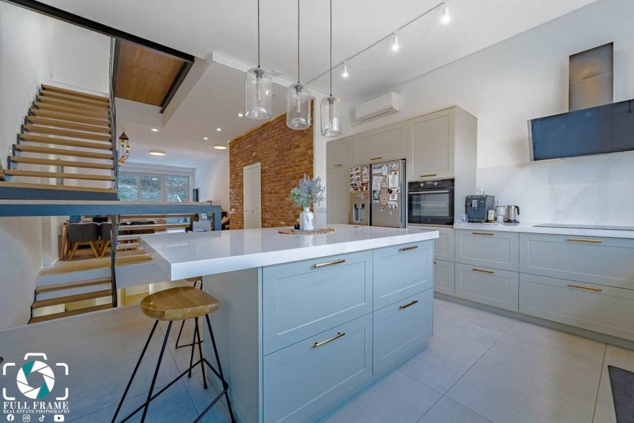 ___________________________________________________________________ ENGLISH: FLOOR PLAN AND VIDEO WALKTHROUGH AVAILABLE UPON REQUEST. For sale, an exclusive semi-detached house in the Medveščak neighborhood, just a 15-minute walk from Ban Jelačić Square. The heating in the house is individual gas heating, and the house is air-conditioned. The house consists of 2 residential units spread over 4 floors: A large flat with an area of approximately 200 m2 and a studio apartment with an area of approximately 40 m2. The house comprises: BASEMENT FLOOR: - Room, bathroom, laundry room, storage under the stairs. HIGH GROUND FLOOR: - Studio apartment with a private entrance, bathroom, and hallway (ideal for guests or rental). - Entrance to the large flat with a staircase, bedroom. FIRST FLOOR: - Large living room connected to the kitchen and dining area, guest toilet, terrace, and garden. SECOND FLOOR: - Hallway, master bedroom with a private bathroom and balcony, children's room with a private bathroom and terrace (the children's room is designed to be converted into 2 rooms if needed). Ownership is clear, and the property is legally divided.