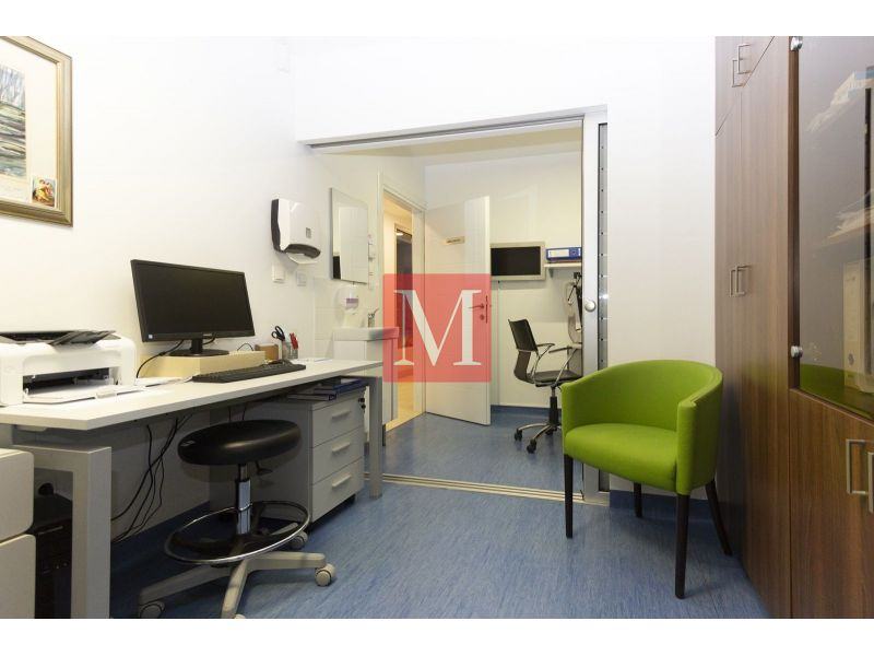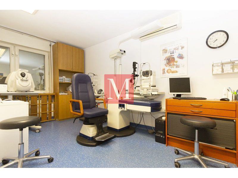 Sastoji se od recepcije s čekaonicom, 7 ordinacija i 2 sanitarna čvora. Liftom povezan s dodatnim prostorom od 100 m2 na 1.katu (operativni trakt) koji je u najmu i koji se može preuzeti zajedno s prizemljem.
