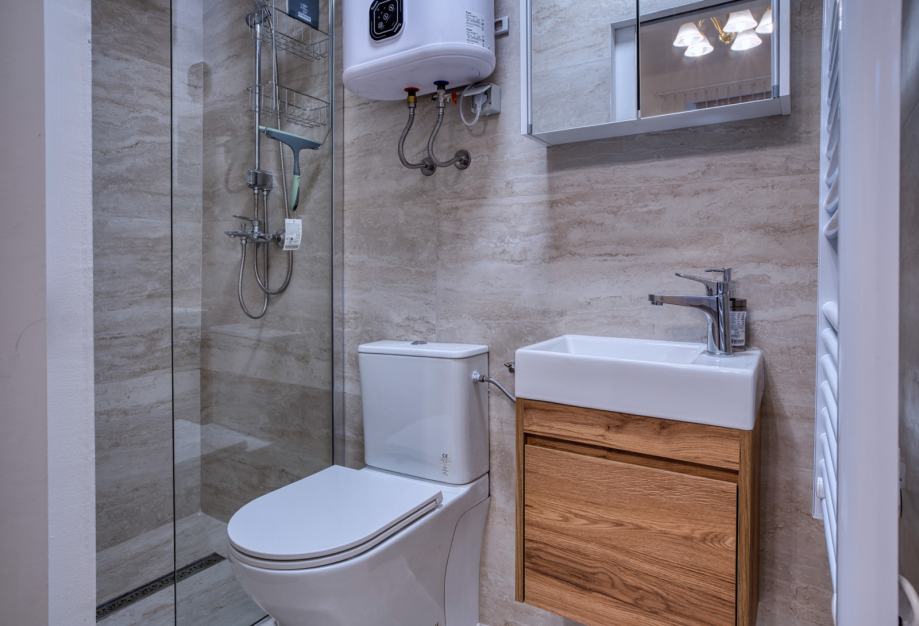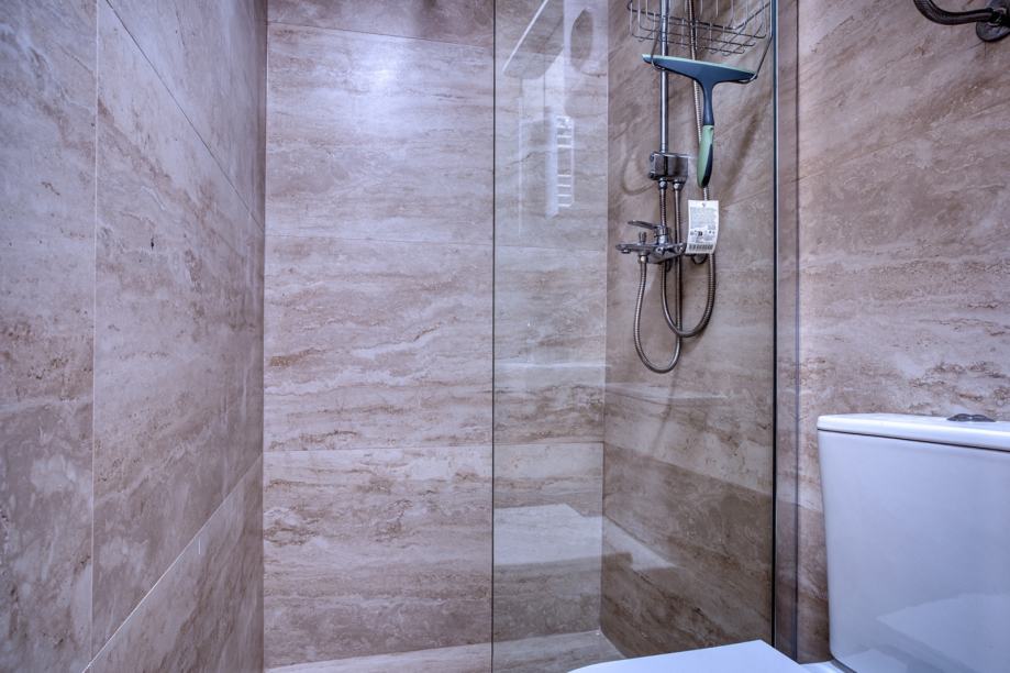 Površina iznosi 20 m2 a sastoji od sobe s kuhinjom i kupaonice s tušem. Kuhinja je opremljena hladnjakom, pećnicom i pločom za kuhanje.