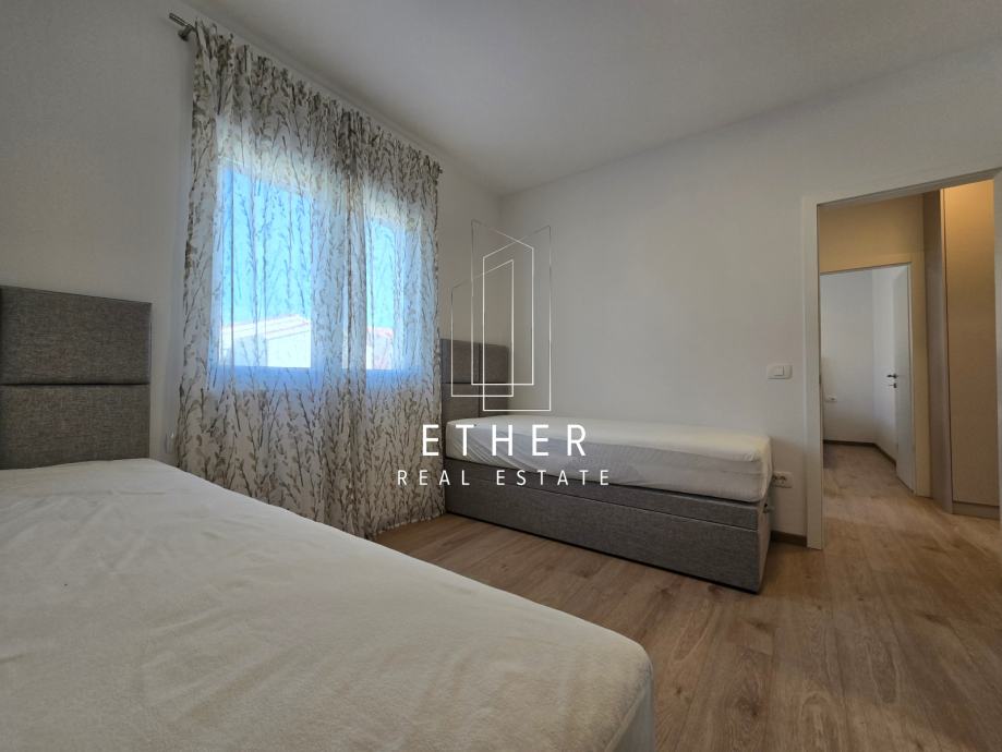 Klimatiziran, uvedeno podnog grijanje u kupaonici i dnevnom dijelu, pvc zatvori sa komaricama i električnim roletama u svakoj prostoriji, opremljen namještajem i uređajima (TV, klima, perilica posuđa, perilica rublja).