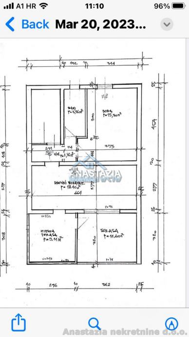Meje Supilova ulica 61m2+11m2 terase otvorenog pogleda na more. Stan se nalazi na 3.katu zgrade koji se sastoji od kuhinje s blagovaonicom, dnevnog boravka, sobe, kupatila te odvojene sobe na 2.katu u koju se ulazi sa stubišta.
