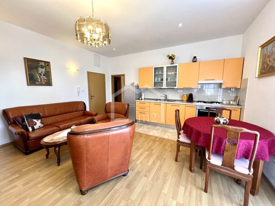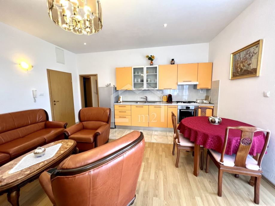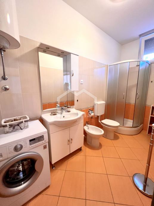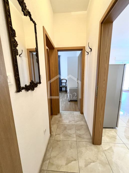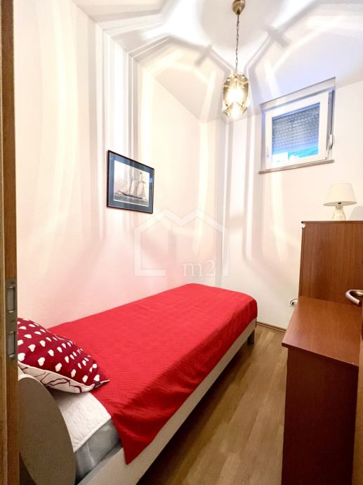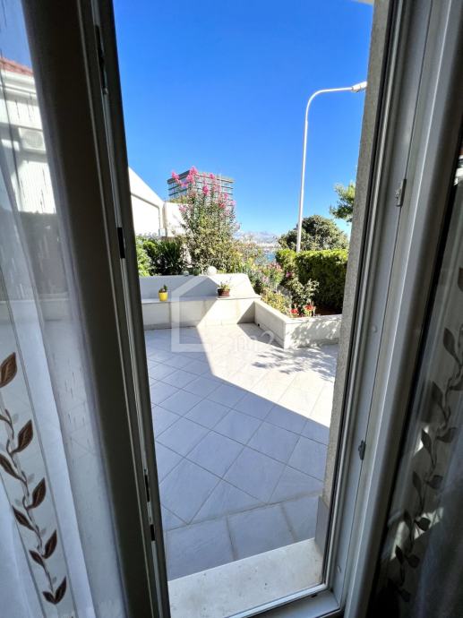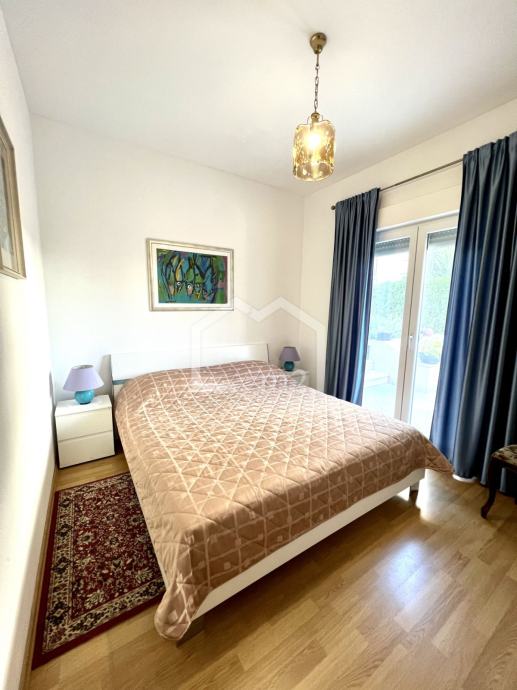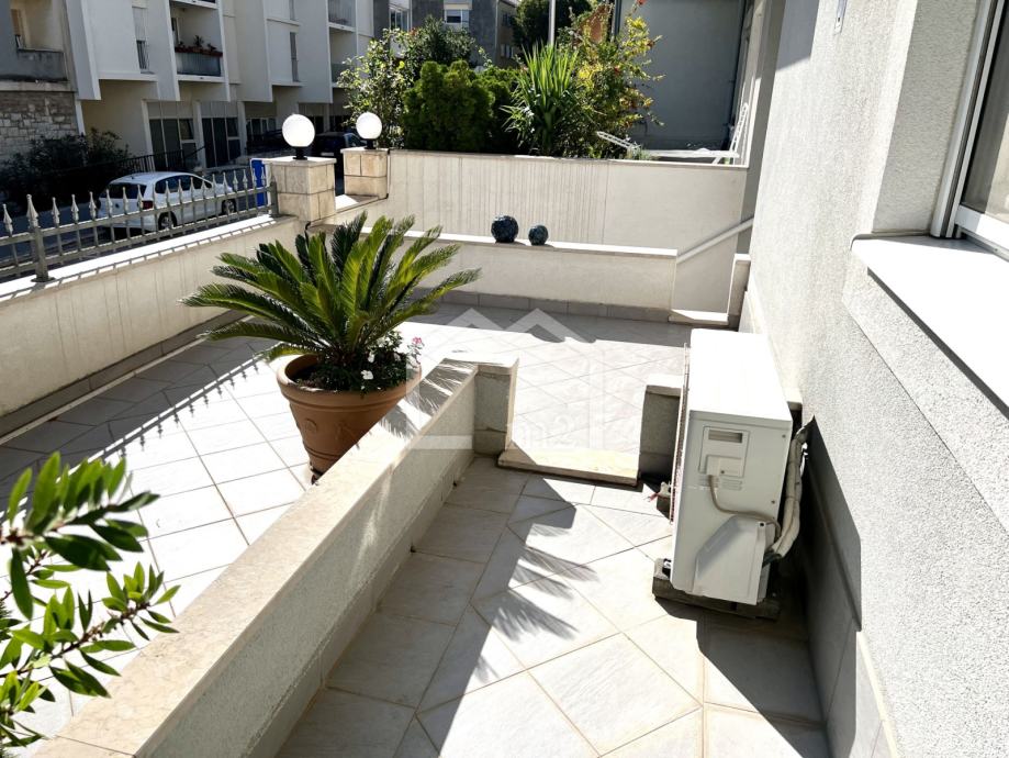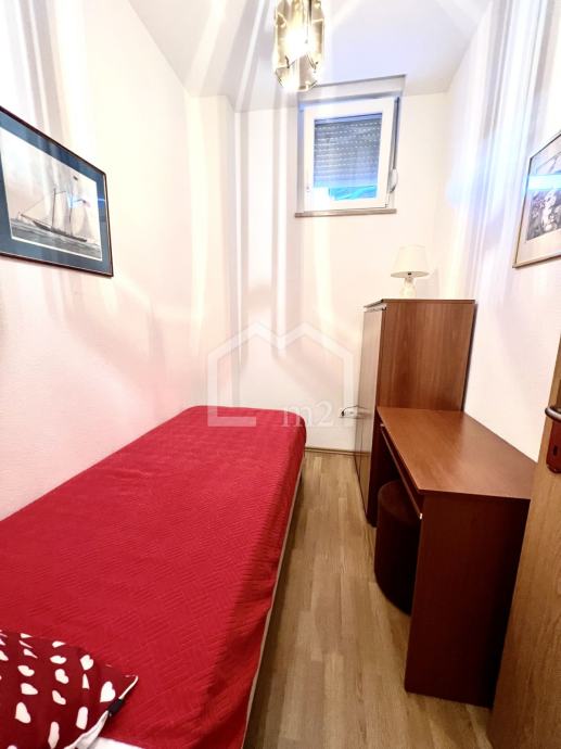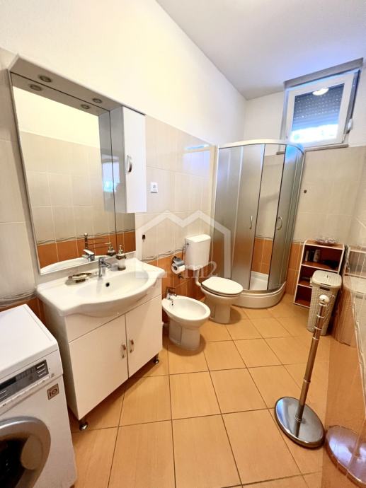 Posredujemo u najmu komfornog dvosobnog stana, koji se nalazi na odličnoj lokaciji u blizini centra grada. Smješten je na visokom prizemlju obiteljske kuće. Sastoji se od ulaznog dijela, dnevnog boravka sa kuhinjom i blagavaonom, dvije spavaće sobe, kupaone te velike terase sa koje se pruža lijepi pogled na more i grad. Idealna lokacija u blizini svih sadržaja potrebnih za ugodan gradski život.