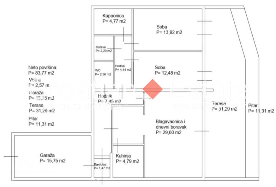 - Privatna garaža, površine 15,75m2, do koje postoji direktan ulaz iz stana