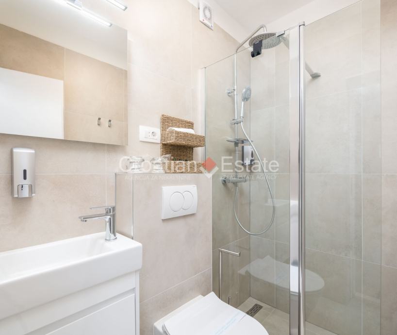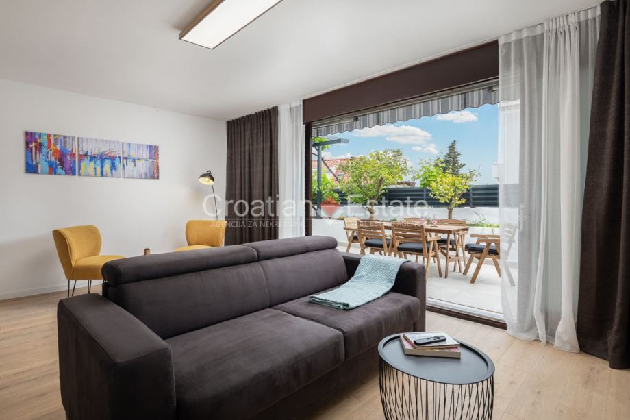 - Terasa površine 42,6m2, sa velikom žardinjerom i pogledom na more, orijentirana na jug