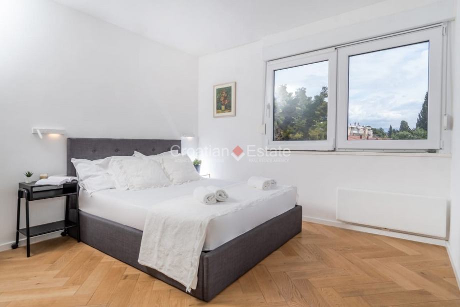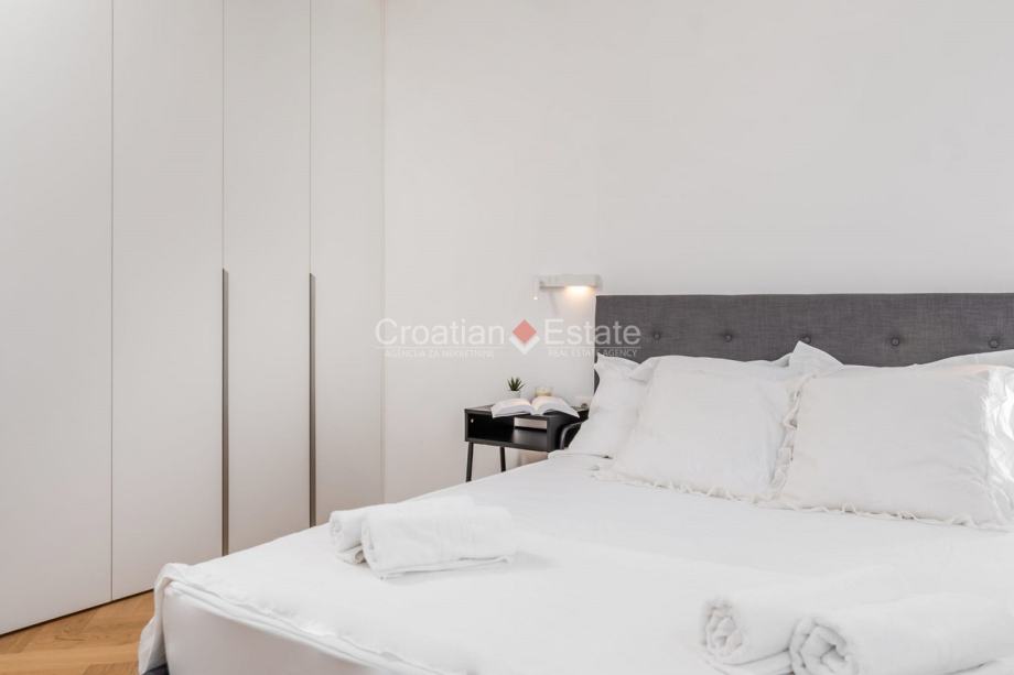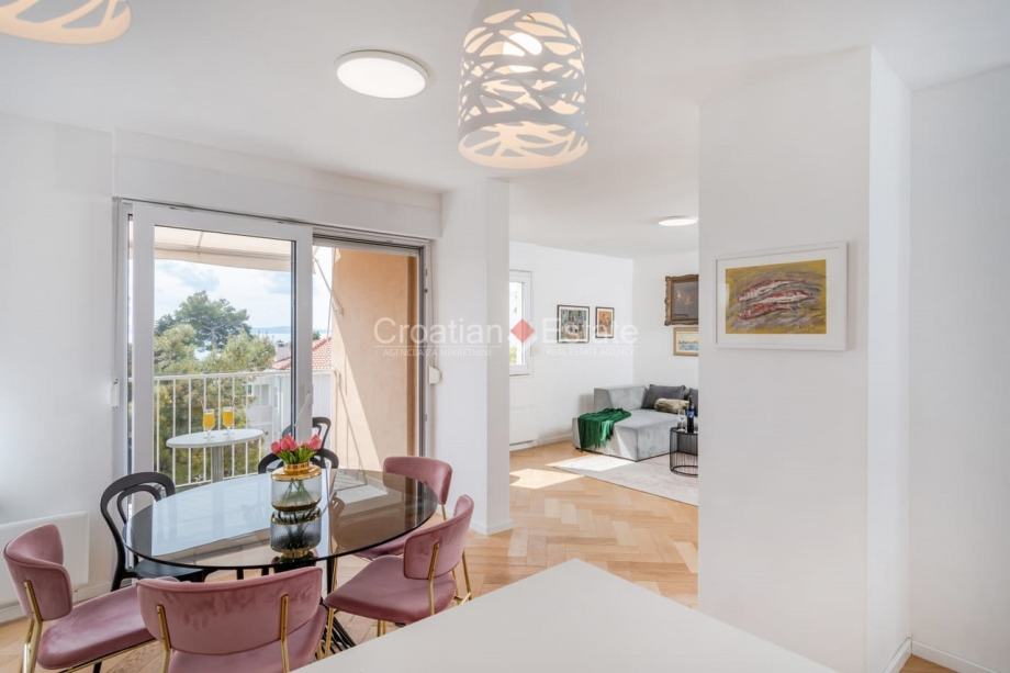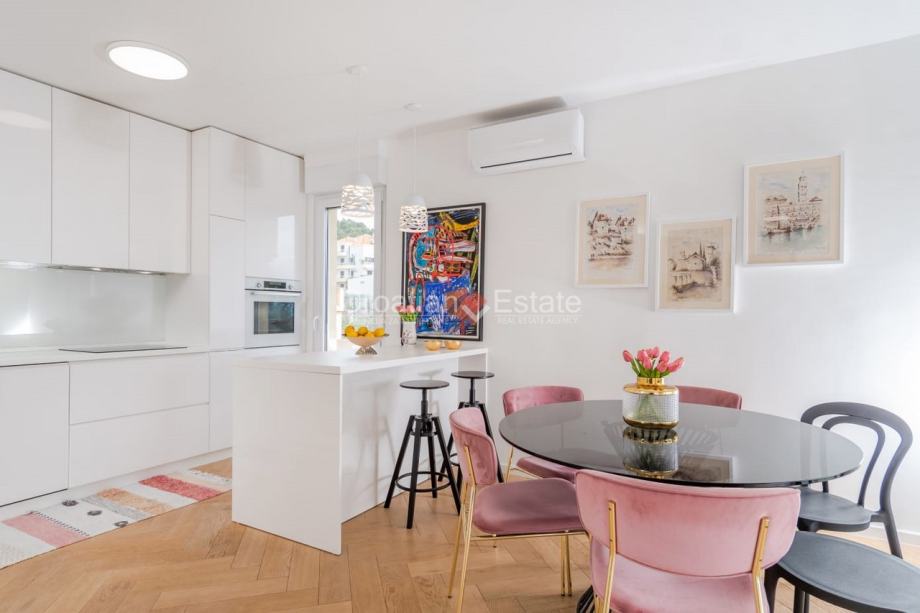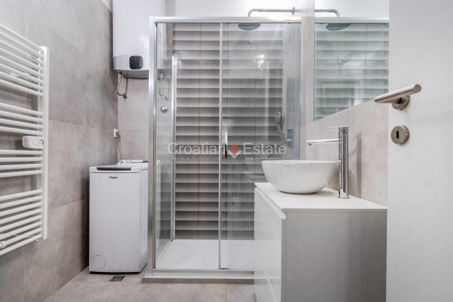 Iznajmljujemo moderan i sunčani dvosobni stan smješten na drugom katu stambene zgrade. Stambena površina stana iznosi 85 m2, a sastoji se od kuhinje s blagovaonicom i dnevnim boravkom, dvije spavaće sobe, kupatila i lođe na jugu.
