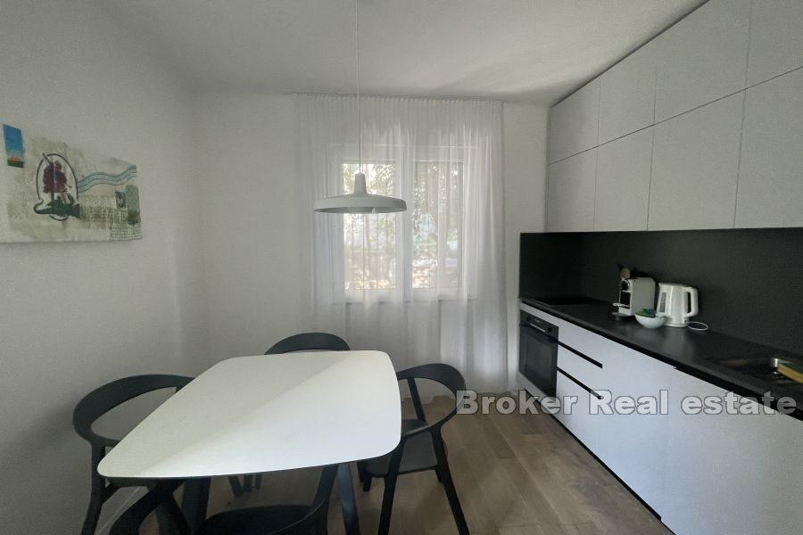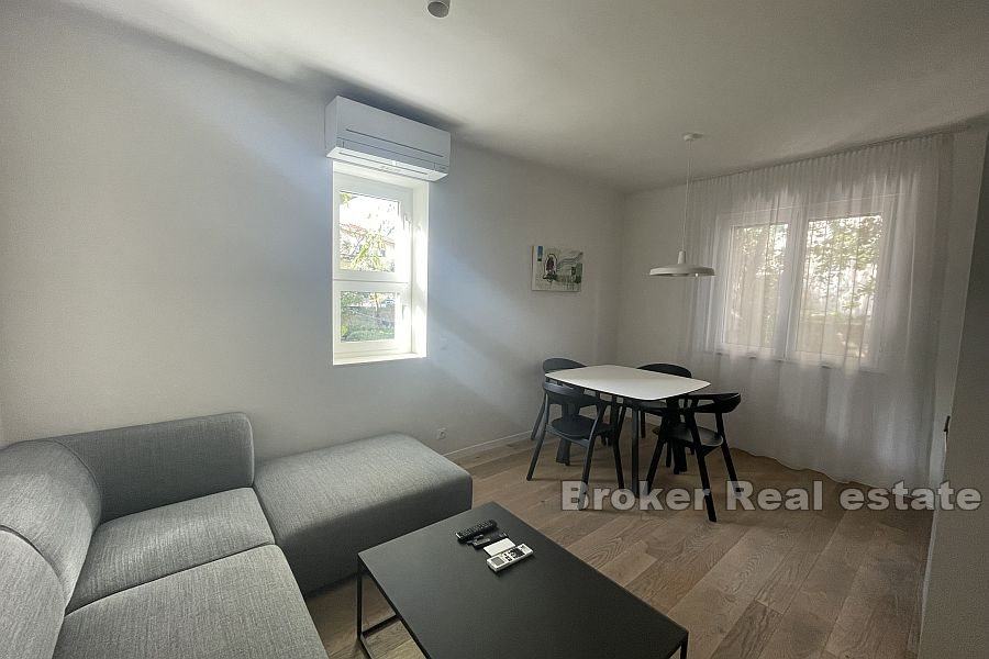 Dvosoban stan smješten na mirnoj ozelenjenoj lokaciji, na Mejama, za dugoročan najam. Stan se nalazi na visokom prizemlju stambene zgrade u poželjnom kvartu i sjeverno-južne je orijentacije. Prostire se preko 52 m² i sastoji se od hodnika, dvije spavaće sobe, kupaonice te otvorenog dnevnog dijela koji se sastoji od kuhinje s blagovaonicom i dnevnog boravka. U potpunosti je namješten i opremljen te se kao takav i iznajmljuje. Grijanje i hlađenje se odvija putem tri klima uređaja i podnog grijanja, a odlikuju ga funkcionalnost i suvremeni dizajn. Parking se lako može pronaći u neposrednoj blizini zgrade. Na pješačkoj udaljenosti nalaze se dućani, pekara, škola, centar grada te svi drugi sadržaji potrebni za kvalitetno urbano življenje.
