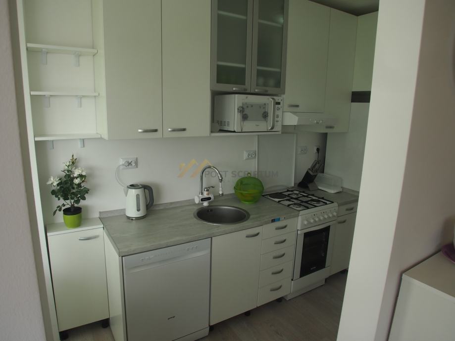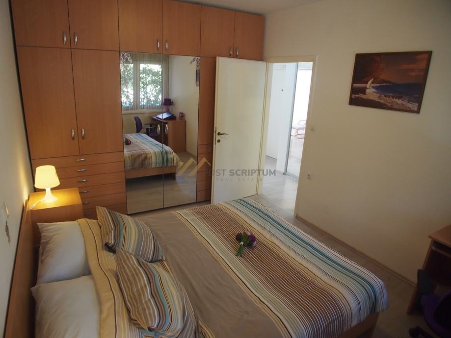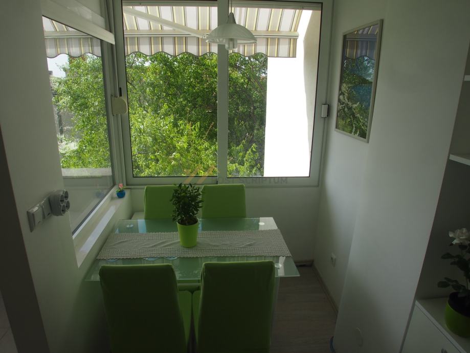 Stan je klimatiziran, moderno namješten, te opremljen svim potrebnim uređajima (TV, klima, perilica rublja, perilica posuđa).