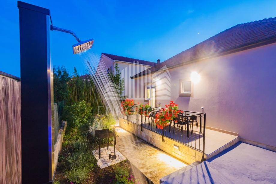 Kuća je površine 90 m², potpuno namještena, s okućnicom od 370 m² i tri parkirna mjesta.