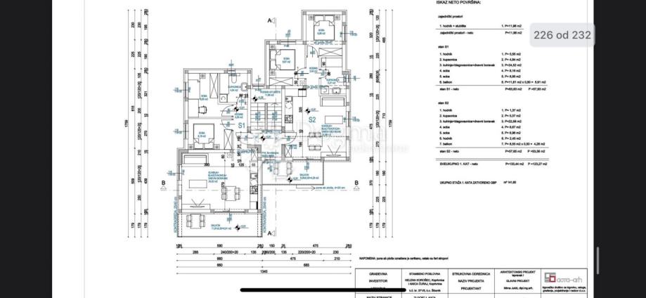 Stan je projektiran s naglaskom na maksimalnu iskoristivost prostora, pravilne sobe i ugodan dnevni dio otvorenog koncepta.