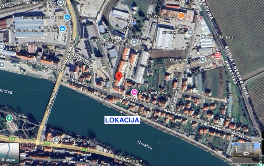 Prodaje se dvosoban stan 74 m2 na petom katu stambeno poslovne zgrade na području Unke u Metkoviću. Stan nema lift. Stan je u odličnom stanju, održavan, izoliran i djelomično namješten. Ono što bi posebno naglasili u vezi ovoga stana je predivan pogled sa balkona na rijeku Neretvu gdje se nalazi veliki stol za druženje sa obitelji i blizina centra grada. Ovaj stan je izvrsna prilika za obiteljski dom na mirnoj lokaciji.