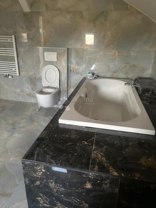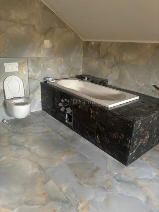 Ispred kuće se nalazi veliko dvorište za moguće razne namjene te parkirna mjesta. Uz kuću je glavna cesta i odlična je blizina svih sadržaja za život. Na gornjoj etaži se nalaze 2 spavaće sobe. velika kupaona sa novom velikom kadom i wc, te prostorija za mašine i vešeraj. Na podu je vrhunski parket i keramika. Rukohvat za gornju etažu je vrhunske kvalitete. Za sve radove dostupni su računi izvoditelja gradnje. Kuća je pogodna za obitelj. Nove su sve instalacije. Kuća ima građevinsku i uporabnu dozvolu.