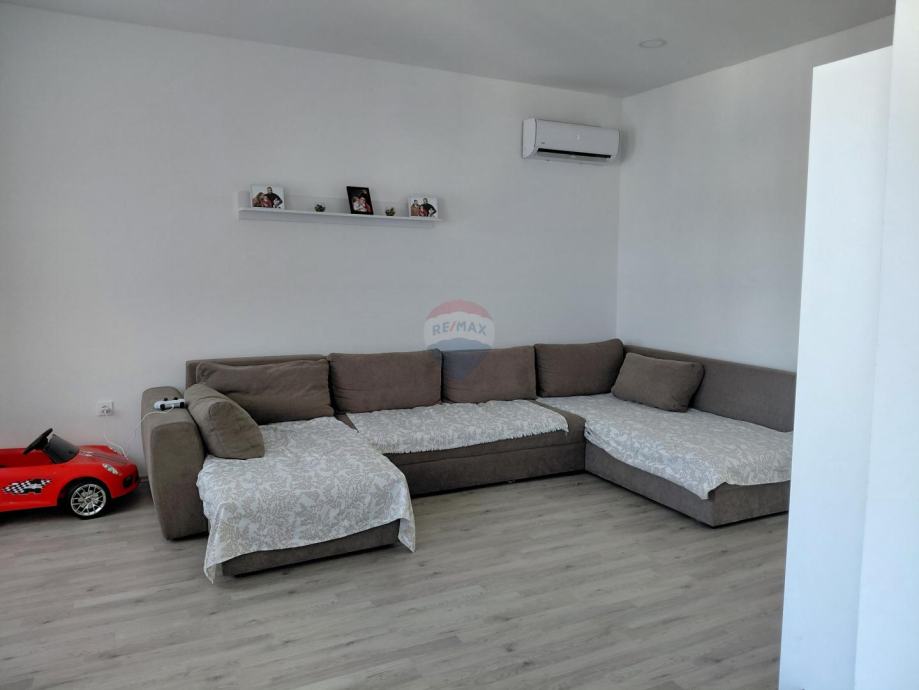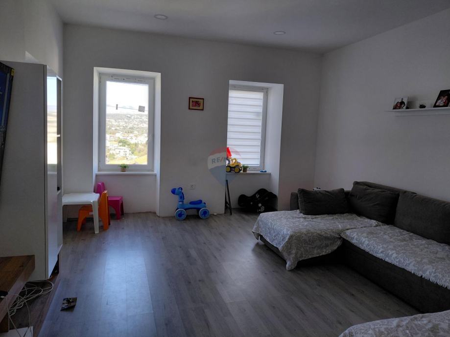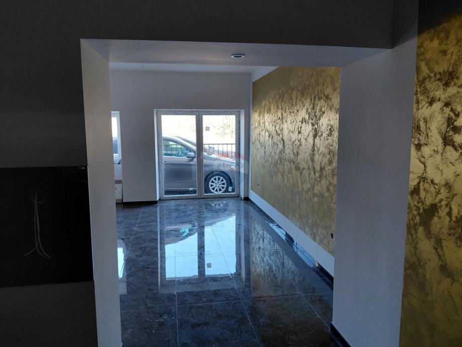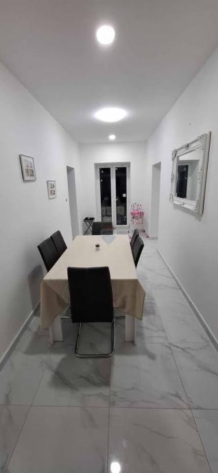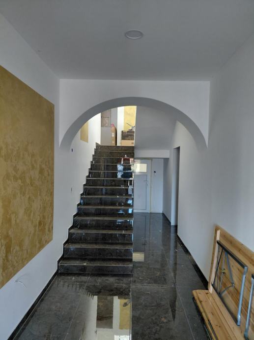 gornji stan: potpuno namješten novim, modernim namještajem, idealan za useljenje bez potrebe za dodatnim ulaganjem. Sastoji se od kuhinje, blagavaonice, dvenvnog boravka, dvije kupaonice te dvije spavaće sobe.
