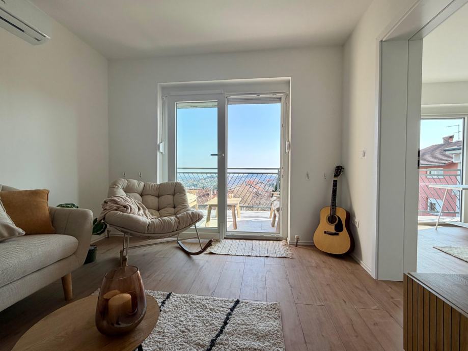 Posebna vrijednost ove nekretnine je osjećaj prostora i otvorenosti — dnevni boravak izlazi na terasu, a jedna od spavaćih soba također ima vlastiti izlaz na vanjski prostor, što stan čini vrlo ugodnim za život tijekom cijele godine.