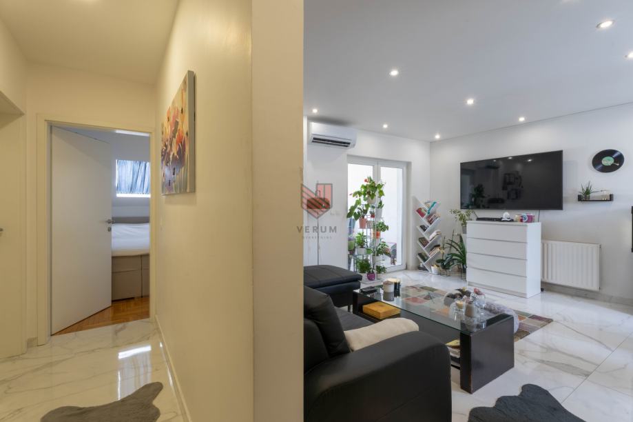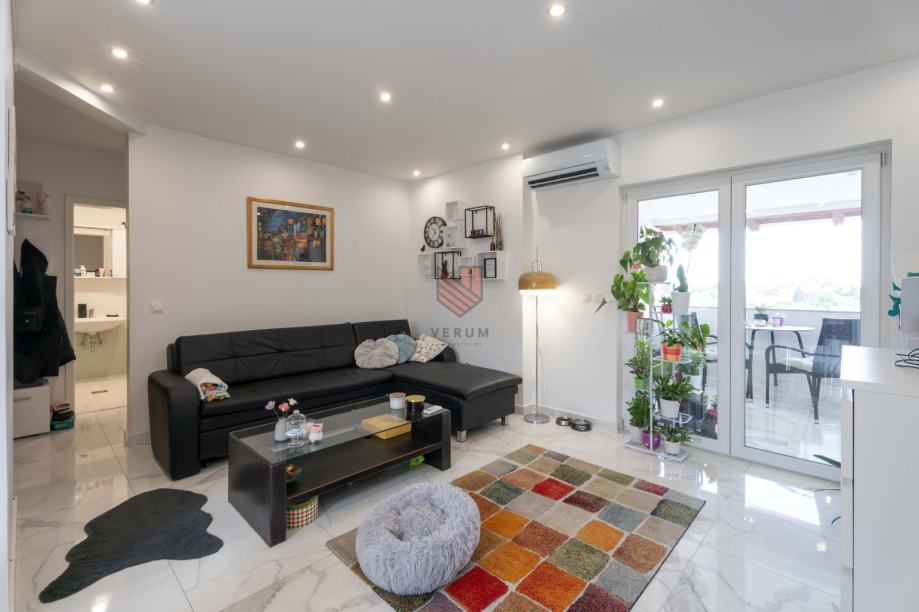 Nekretnina se sastoji od ulaznog hodnika, dnevne sobe i kuhinje povezane u jedno, dvije spavaće sobe, kupaonice, balkona te loggie s prekrasnim pogledom. Na prvom katu nalazi se spremište koje pripada nekretnini. Uz nekretninu ne dolazi parkirno mjesto te je isto moguće potražiti u blizini lokacije stana. U blizini nekretnine nalaze se svi sadržaji potrebni za život. Blizina autobusne stanice. Sve ostale infromacije na upit.