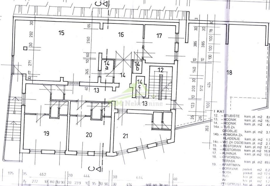 I. KAT 222.33 m2 (199,88 + terasa 89,81 x 0,25):
