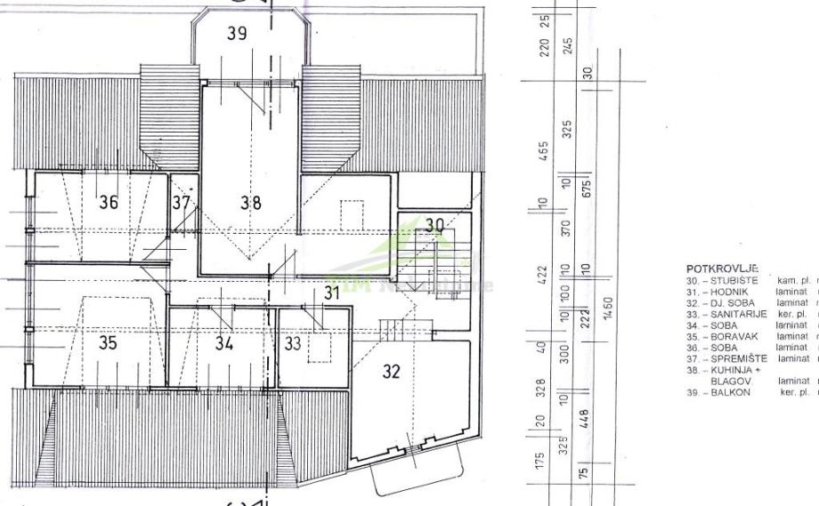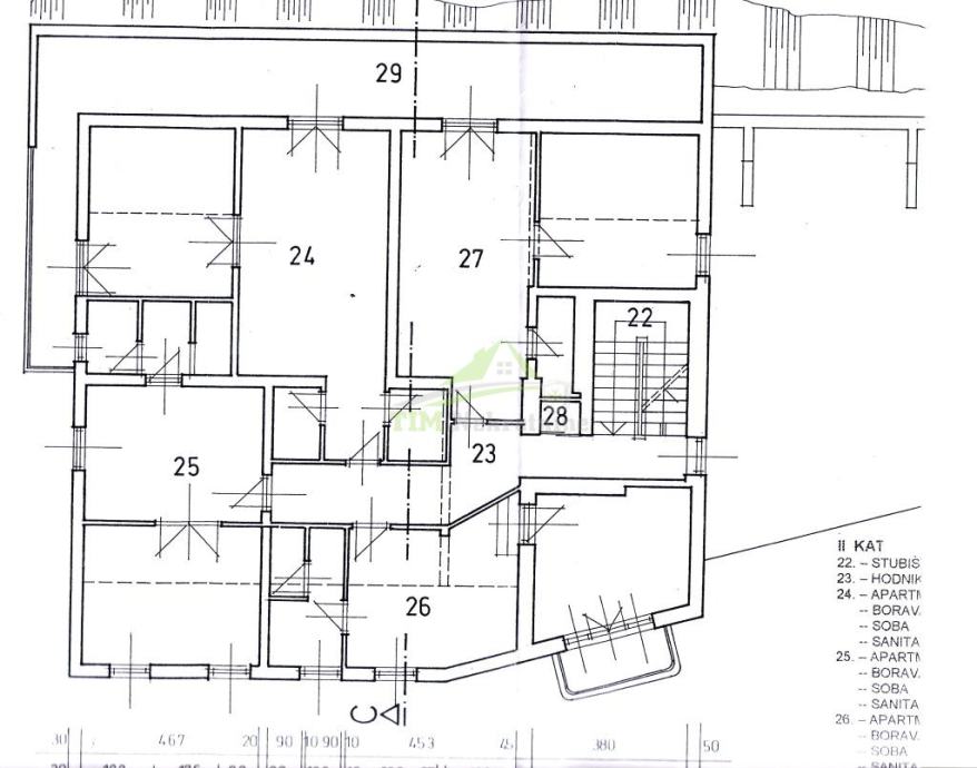 II. KAT; 209,87 m2 (198,6 + terasa 45,08 x 0,25):